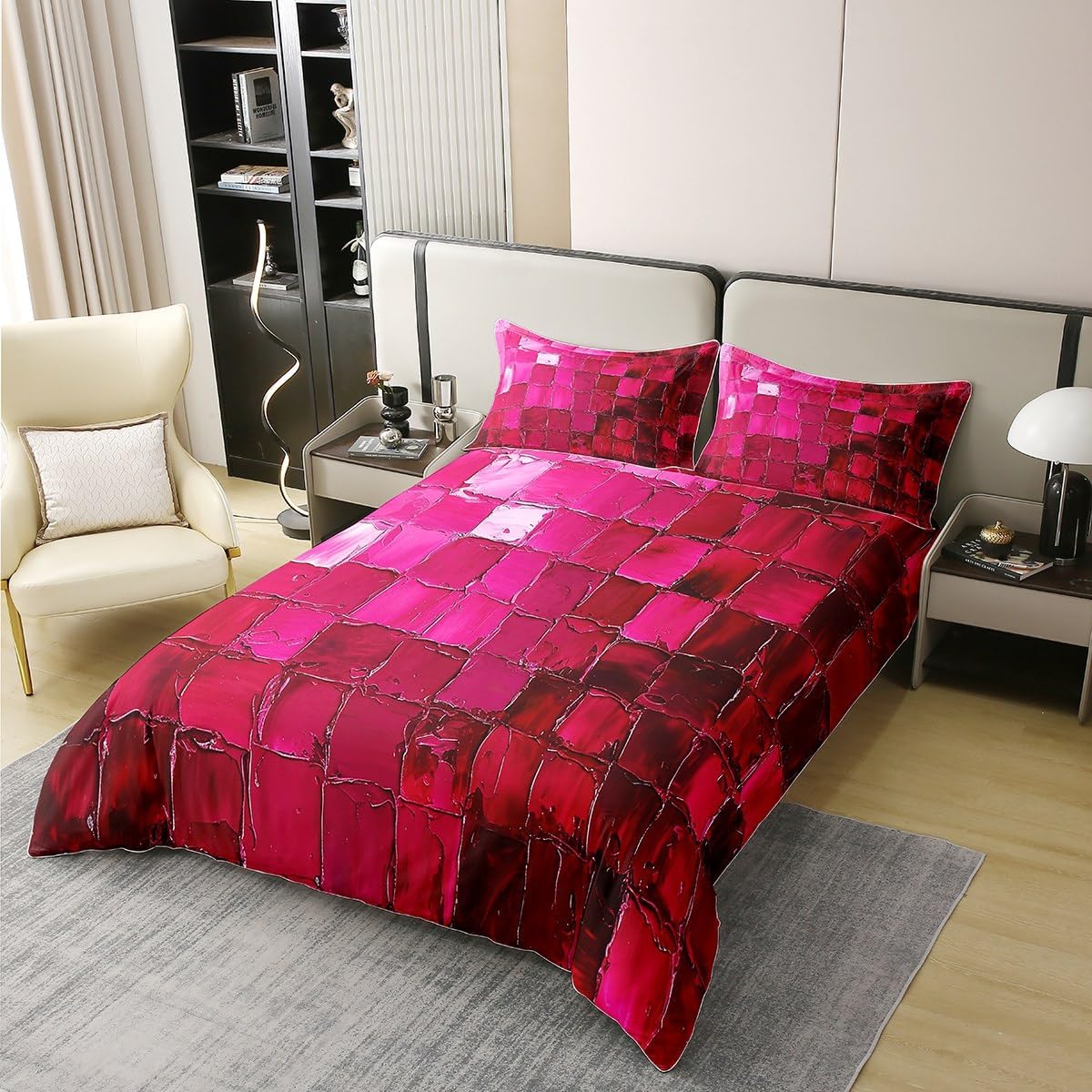 Package Include: Duvet Cover and Pillowcase, no comforter or sheet Quality duvet cover set pattern bedding set, simply decorating your rooms any time you want, bringing you fresh feel for year round use Material: Made from 100% Cotton Size Information: Twin size 2pcs duvet cover set: 1 Duvet Cover 68" x 90" 173 x 229cm, 1 pillowcase 20" x 30" 51x75cm Full size 3pcs duvet cover set: 1 Duvet Cover 80" x 90" 200 x 229cm, 2 pillowcase 20" x 30" 51 x 75cm Queen size 3pcs duvet cover set: 1 Duvet Cover 90" x 90" 229 x 229cm, 2 pillowcase 20" x 30" 51 x 75cm King size 3pcs duvet cover set: 1 Duvet Cover 104" x 90" 264 x 229cm, 2 pillowcase 20" x 36" 51 x 92cm Personalize your bedroom: Beautiful design and colorful print, making your bedroom unique and bringing you a wonderful dream Washing instructions: Machine wash separately in cold water, hang dry, do not bleach Occasion: The cute soft duvet cover bedding sets designed for children, adults, men, women, teens. This duvet cover set is also suitable for all seasons, spring, summer, autumn and winter. Warm Tips: There may be some slight differences between the color tone of the pictures and that of the actual items due to lighting effects, monitor's brightness, etc.