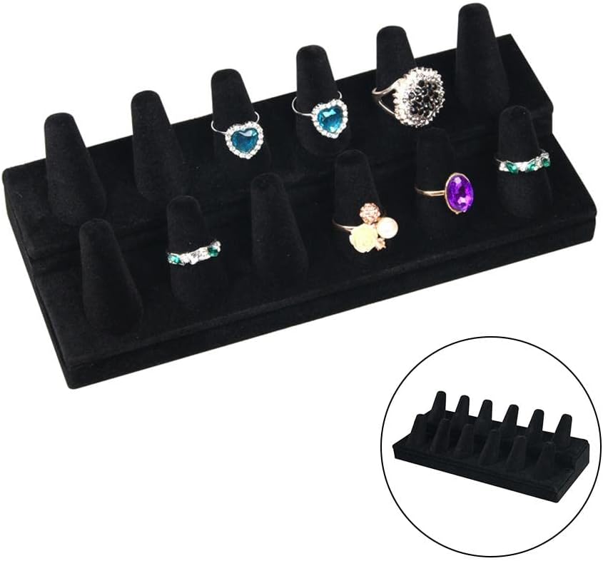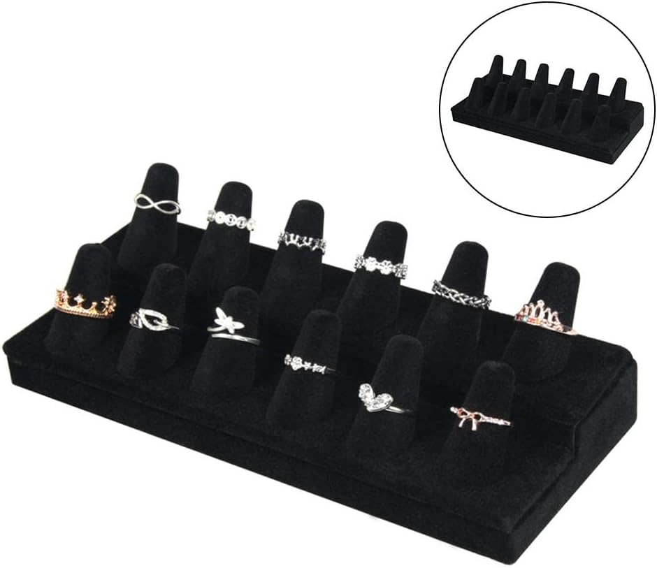Description: - 12 finger display stand jewelry holder organizer. - Great for displaying your rings on the countertops, retail stores, show or craft fairs. - Made of premium resin material, velvet flocking surface protect your rings from scratches. - Great gift for women, girl. - Size: approx. 21x8.5x6cm/8.27x3.35x2.36inchPackage Includes:1 Piece Display StandNote:Colors might be different due to different monitor display.Manual measurement may cause slightly difference in size.