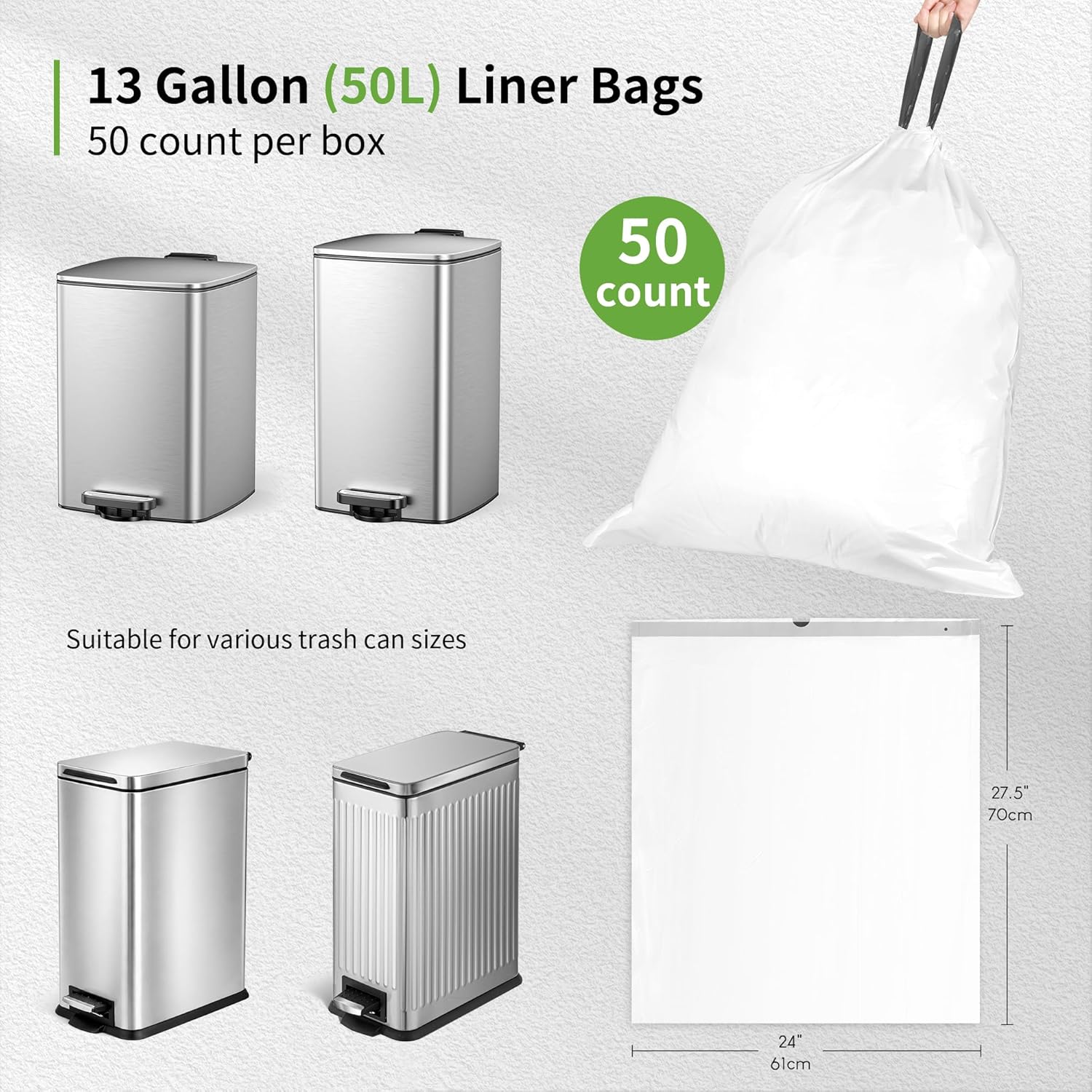 | Included Components | 1 Roll of 50 Trash Bags |