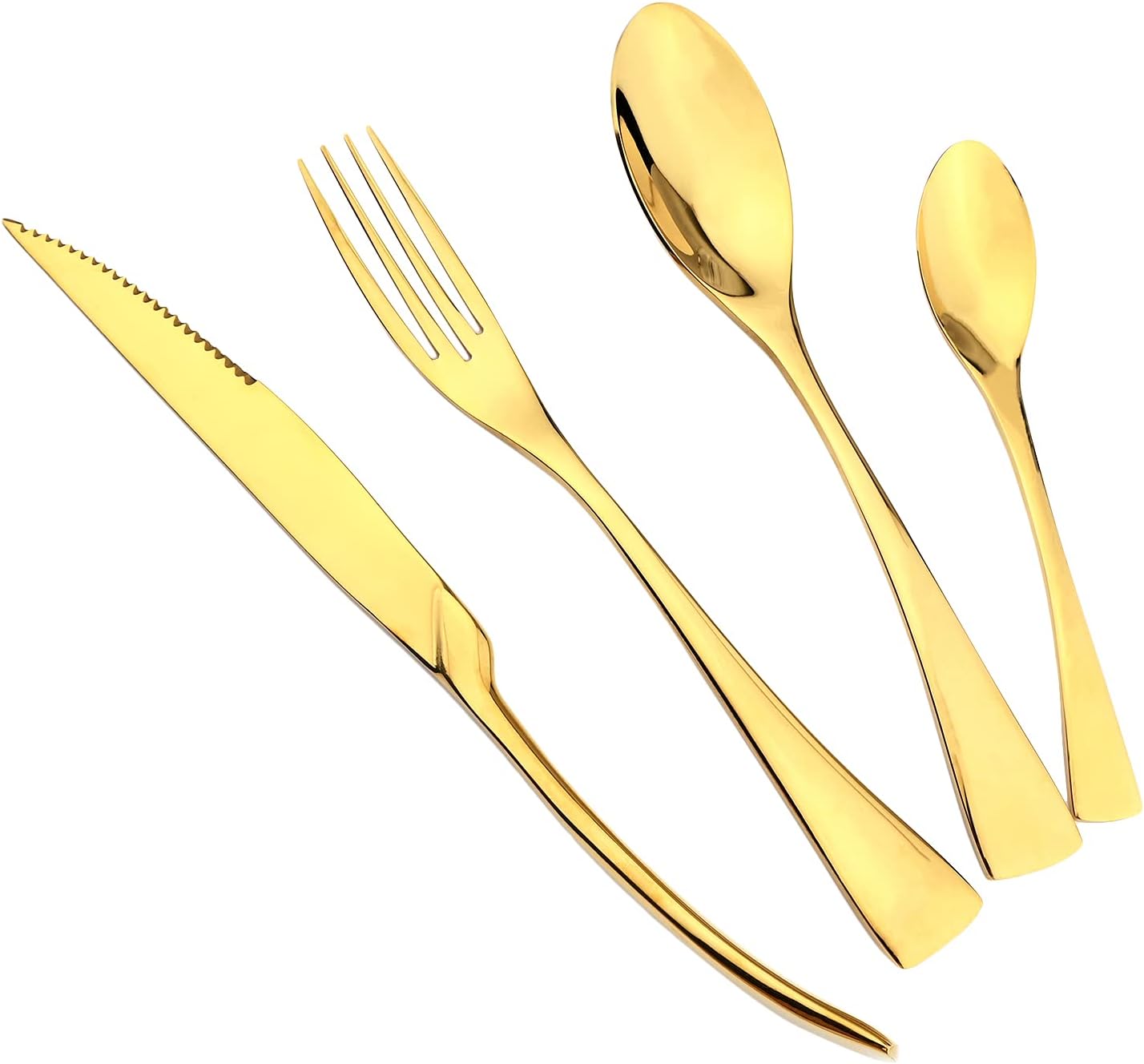 Color:Silver Decent Gift After careful selection, the most practical Flatware set was selected. It is made of 18/10 food grade stainless steel to ensure your safety. The set includes steak knives, teaspoons and suitable size forks and spoons to bring you an exquisite dining experience. Great choice as a gift for lovely family and friends on different festivals, such as house warming, Christmas, Thanksgiving, Birthday, Mother's Day, etc. size Dinner / Dessert Spoon Length: 20cm/7.87" weight: 70g/2.47oz Dinner / Dessert Fork Length: 20.5cm/8.07" weight: 60g/2.12oz Steak knife Length: 25.2cm/9.92" weight: 100g/3.53oz Teaspoon Length: 15.3cm/6.02" weight: 30g/1.06oz Using Instruction 1. Please wash the cutlery set with warm soapy water before first using to wash off any processing residue left from manufacturing. 2. Please clean and dry the flatware set after using for your healthy daily use, and store in dry place for its durability. 3. Please use soft towel to clean the set; Do not use iron wire to destroy their smooth surface.