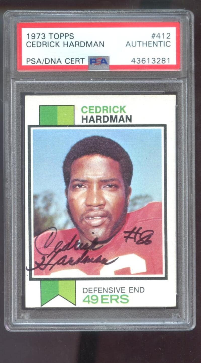 1973 Topps #412 Cedrick Hardman AUTO SIGNED Autograph Autographed Card PSA PSA/DNA Football NFL COA San Francisco 49ers. This listing is for a 1973 Topps #412 Cedrick Hardman AUTO SIGNED Autograph Autographed Card PSA PSA/DNA Football NFL COA San Francisco 49ers. The autograph has been authenticated by PSA as shown by the PSA/DNA certification on the graded case. PSA is one of the most respected autograph authenticators in the hobby. The card itself has also been authenticated by PSA as stated on the PSA case. The card is shown in the first scan. The back of the card is shown in the second scan. Five cards are shown in the second scan, but only the one card described in the title and shown in the first scan is included. Match the PSA serial number of the card in the first scan to that in the second scan to determine which back corresponds to the card listed. Great card!