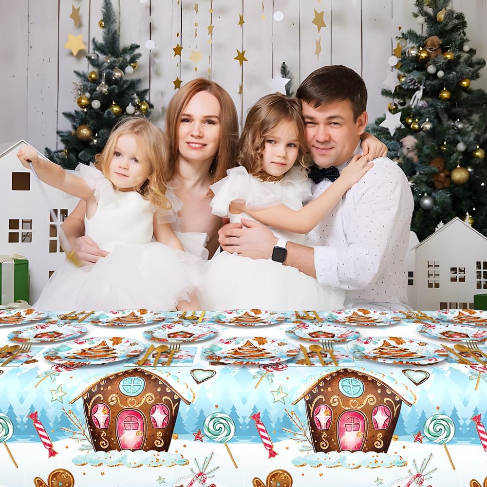 Package Includes: The christmas party decorations includes 3pcs disposable christmas gingerbread house party tablecloth, enough for your party use and replacement. christmas party tablecloths size is 137 x 274 cm/ 54 x 108 inches, suitable for most tables Christmas Party Supplies: 194pcs gingerbread house paper plates and napkins, 2pcs gingerbread party tablecloth
