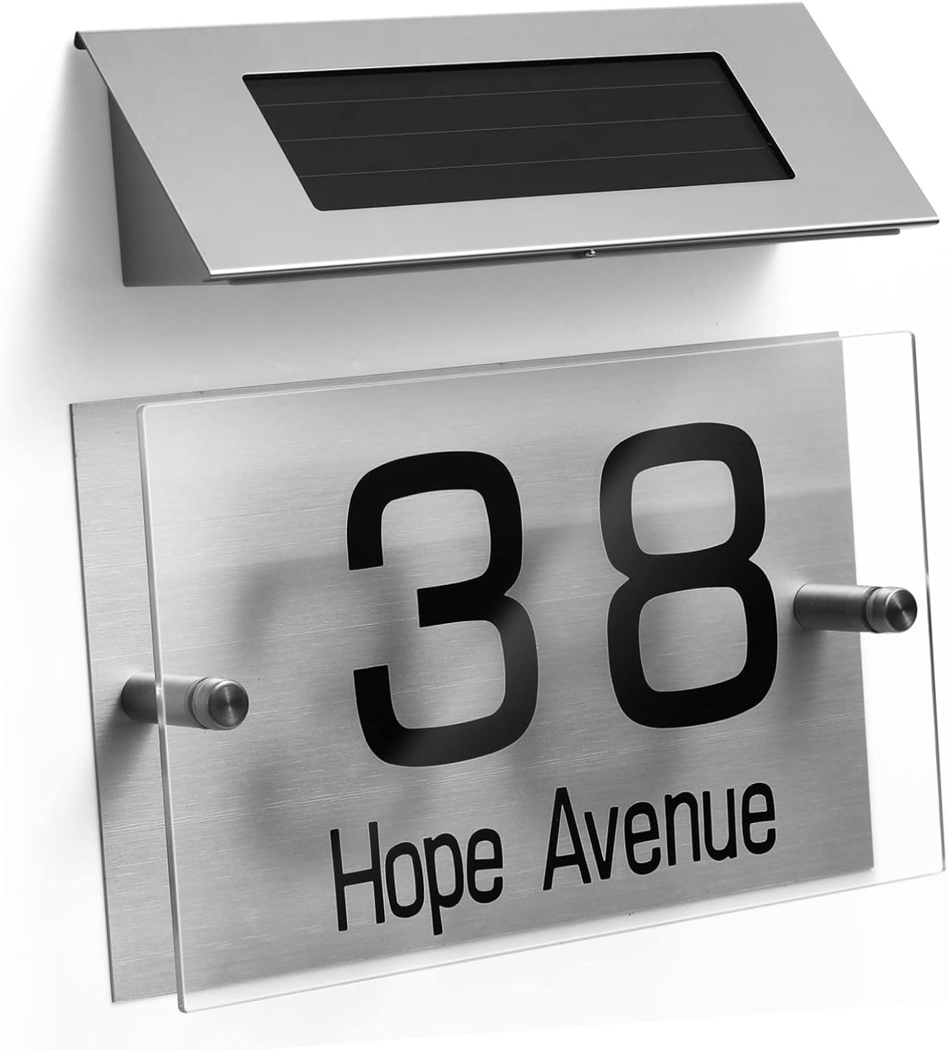 Package List 1 1 x set of hanging plate 1 x set of alphabet 1 x set of installation accessories Characteristics Battery: 1.2V 600mA solar power address -Color:Multi solar light address Solar panel: 2.8V/150mA solar house LED type: 9 x 2835 6500K, 9 x 2835 3200K illuminated address plaque -Size:23.50X22.00X14.00cm/9.24X8.65X5.50in lighted address solar Light color: white, number plaques Charging time: 5-6h solar number door plate Working time: 6- lighted house number solar -Material:stainless steel solar address plaque - Wild range of uses. Fit for outdoor, such as patio, garden, yard, porch, pathway and so on solar lighted house numbers. - Easy to operate and to install with the simple structure, to provide you with relaxed way of modification solar house number . - Solar powered design address light, it will charge itself at day . - Acrylic panel and set to DIY your own address plate at will house number signs for outside. - This house number has solar lamp to light up , very fit for night time usage door .Goods Informationsolar lighted address signs want a kind of practical house number at night? want to keep your house number visible at night? This can be .house number light Really practical and useful, just install it onto your front door