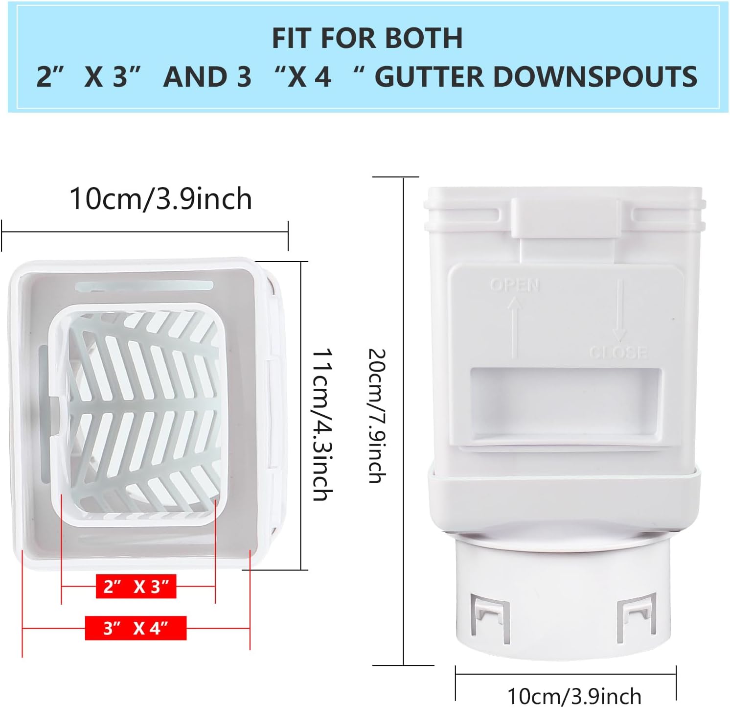 Leaf Filter and Downspout Cleanout,Leaf Removers, Gutter Downspout protection,Downspout Diverter,Fits2X3 and 3X4 drainpipe, (2-pack Black)