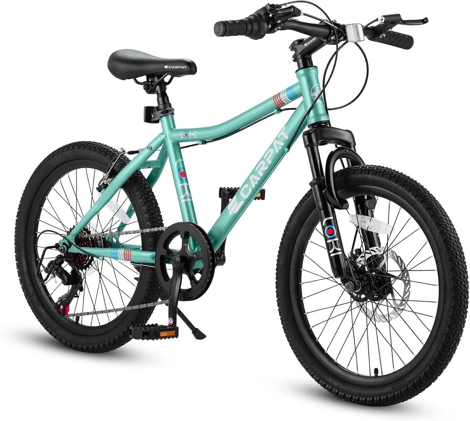 【Ergonomic Durable Steel Frame】— Kids' Bicycles are suitable for ages 8-12 or a rider height of 4'2'-5'6". Durable yet ergonomic 14 inch height carbon steel frame guarantees kids safety during riding. Lower standover height improves alignment between body and bike, making it easier for young riders to mount and dismount.【Great Braking System】— Equipped with front disc brake and rear v-brake, allow for more precise and controlled braking. This braking design comes with a lower lighter weight, meanwhile enough for kids to cope with different terrain.【7-Speed Drivetrain】— Classic 7 speeds rear derailleur creates the perfect bike to allow riders to easily tackle climbs. With twist shifter, kids can quickly select a gear for every terrain, and handle their imagination. It is truly the perfect bike to inspire young riders to climb higher and tackle the downhills freely.【20*2.125" Tires】— The Kids' Bicycle tires are made of high-quality rubber and have a strong puncture and abrasion resistance, 20"*2.125" tires are easier to get on and allow children to focus on having fun without fear of falling!【Front Fork Shock Absorbing Design】Feature 100mm front suspension fork. The thickened shock absorbers help resistant and absorb shocks. The parallel bars can adapt to pressure road conditions. Greatly improve the comfort during riding and allows you to enjoy riding.【Quick Installation】— The Kids' Bicycles arrive 85% assembled and include free pedals and assembly tools. It is easy enough to put together in 20 minutes. The bike can be fully assembled with ease with the help of tutorial videos, and we are more than happy to help with any problems you may have during the assembly process.