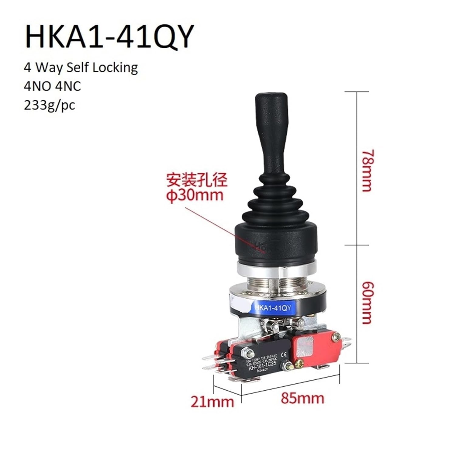 Foot Switches30MM HKA1-41QZ Cross Switch 4 Way Self Latching Locking Reset Momentary 4NO 4NC Monolever Joystick Control Stick 1Pcs