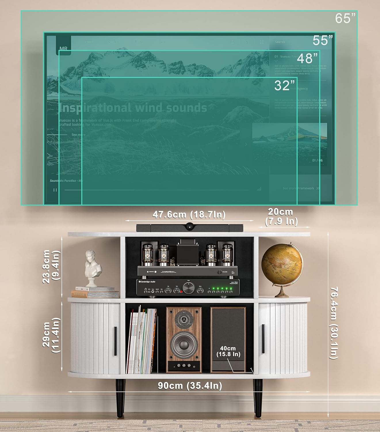 Upgrade your home entertainment with our fluted media console, a perfect blend of midcentury modern tv stand elegance and smart functionality. This versatile piece serves as an ideal tv stand small space or living room, especially where space is a premium. Its design (35.4"L x 15.7"W x 76.5"H) offers a lofty presence without consuming much floor space, making it a superb tall tv stand with storage layouts or cozy apartments.Crafted as a durable wooden tv stand, it features a robust frame, sturdy legs, and a finish that resists water, scratches, and wear. Beyond its stunning retro tv stand aesthetics with curved sliding doors, it's a practical tv console with storage. The interior provides generous room for all your components, complemented by two discreet side compartments and an integrated cable management hole for a clean, organized look.Whether you need a sleek tv table for a minimalist setup or a capacious tv cabinet to conceal clutter, this unit delivers. Choose from a range of finishes to match your tv stand wooden preference. Easy to assemble, this small tv stand with storage is the complete solution for stylishly housing your entertainment system.