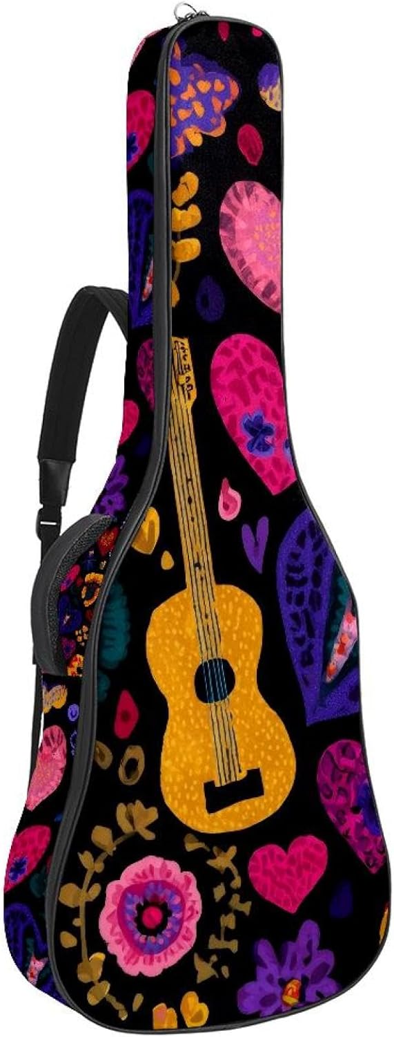 Give your valuable guitar the premium protection it deserves. Our Cute Printed Guitar Gig Bag is engineered for the modern musician who demands both security and convenience. Whether you're heading to a gig, a practice session, or on a short trip, this bag ensures your instrument arrives in perfect condition, ready to play.Constructed from durable, waterproof Oxford cloth, this bag stands up to the elements and the test of time. The interior is a sanctuary for your guitar, featuring ultra-thick padded sidewalls and a soft, anti-scratch lining that cradles your instrument, preventing scratches and damage. The heavy-duty rubber base acts as a shield against everyday bumps and allows for stable placement on any surface.Organization is effortless with multiple dedicated compartments. Two main storage pockets keep all your essential accessories—like a foldable music stand, tuner, picks, cables, and extra strings—neatly sorted and easily accessible. Never fumble for your tablet or sheet music again; the specially designed back pocket keeps them safe and separate.For a perfect, secure fit, the adjustable neck support and internal Velcro strap ensure your guitar does not shift around inside the bag, providing peace of mind with every carry.Care Instructions: To preserve the quality and appearance of your gig bag, please do not machine wash. Simply wipe clean with a damp cloth to remove any dirt or stains.