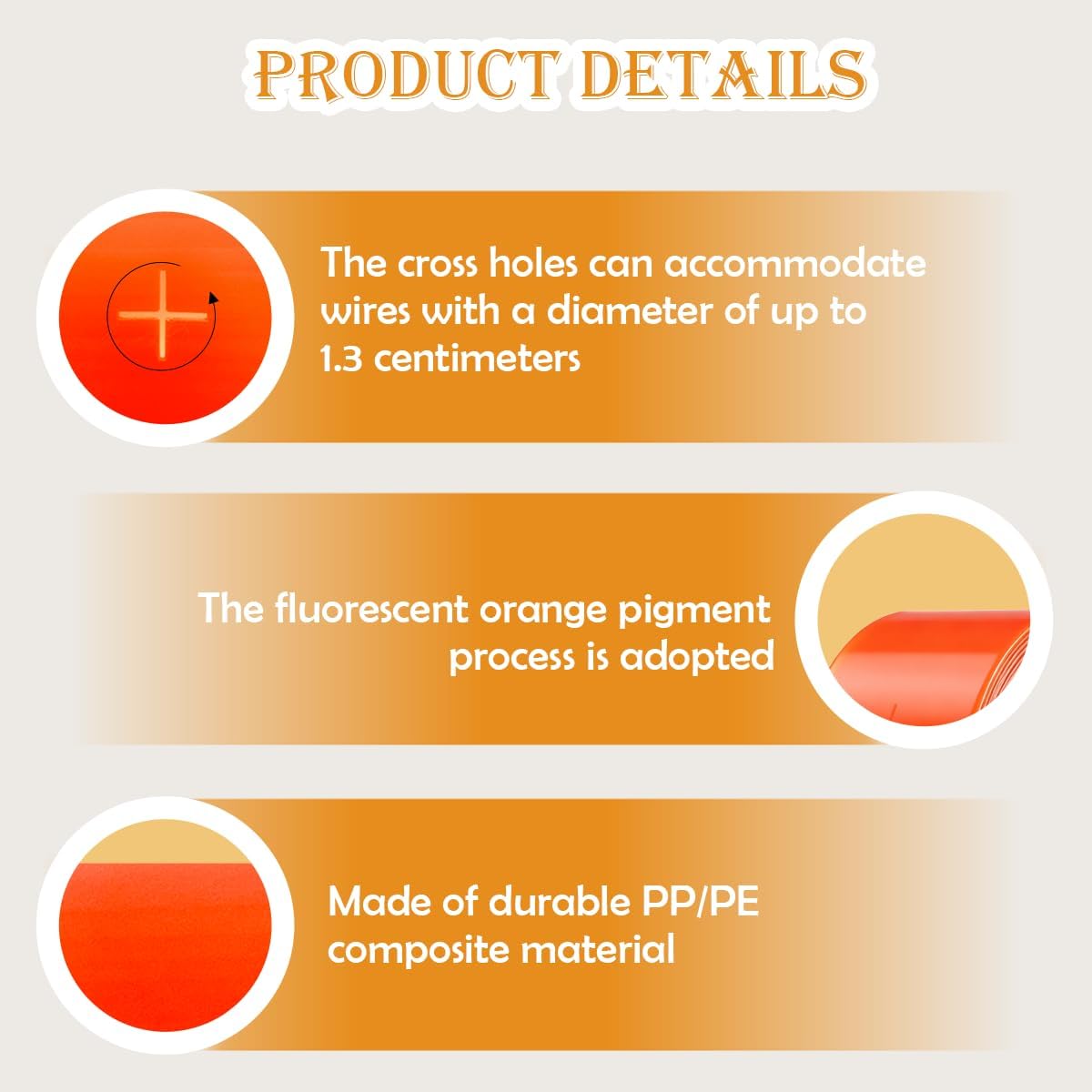 ParametersName: Perforated Orange StripMaterial: PP/PEQuantity: 4 pcsColor: as pictureApplications:Engineered with pigments, the fluorescent orange color remains vivid outdoors. Enhances jobsite by marking wire paths clearly in daylight or low light conditionsAttentionGoods due to long time transportation, individual products may be defective, if you encounter defective products, please contact us promptly for replacementAs the above dimensions are measured manually, the size of the actual item you receive may be slightly different from the above dimensionsDue to monitor, camera or other factors, there may be a slight color difference