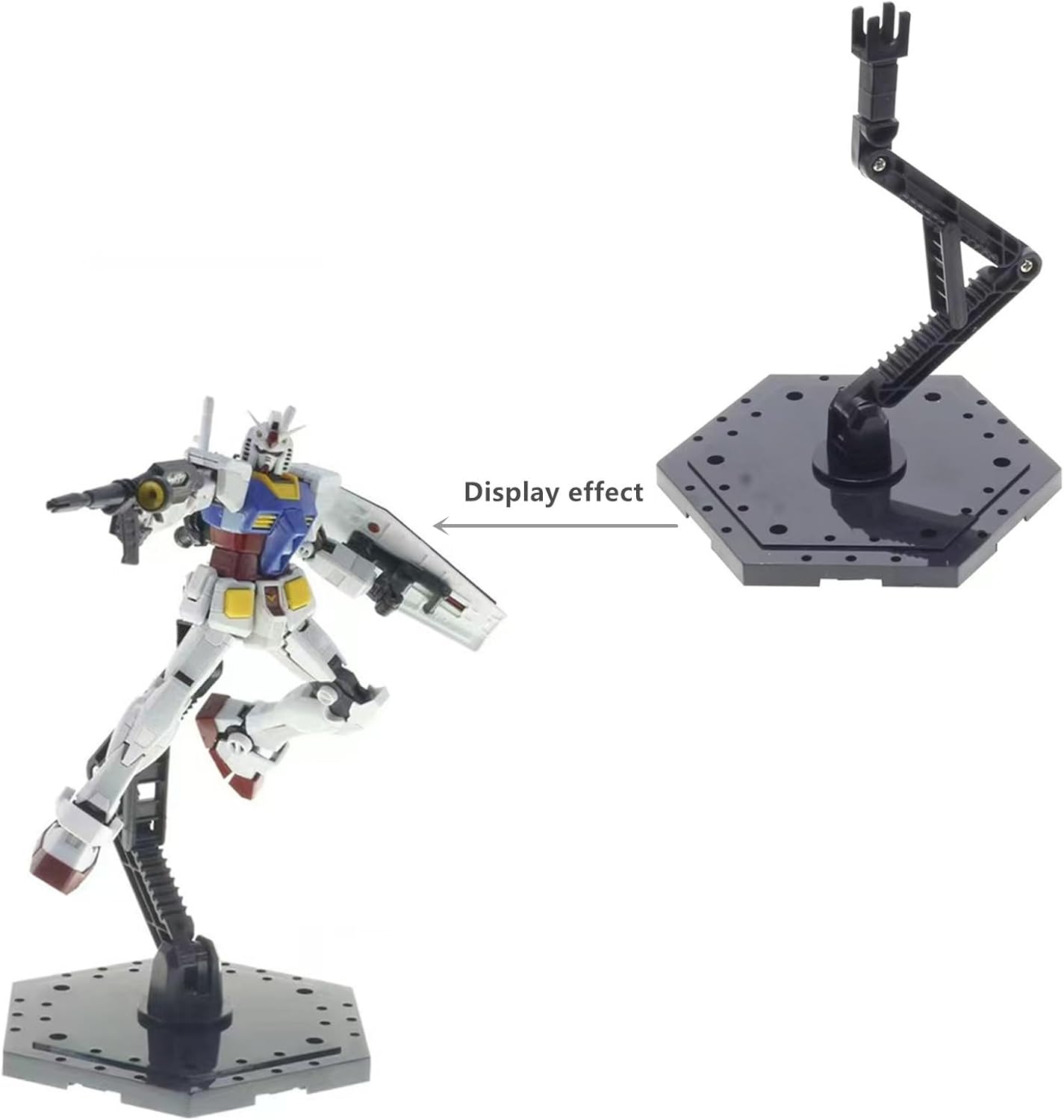 This comprehensive model kit workstation is the ultimate organizational solution for scale model enthusiasts. Designed to streamline your building experience, this all-in-one system combines a multi-compartment storage tray with an adjustable display stand, keeping your workspace tidy while showcasing your completed builds. The innovative storage organizer features dedicated slots for plastic runners, sprues, and essential modeling tools including nippers, hobby knives, tweezers, files, and brushes, ensuring everything you need is within easy reach. The included articulated action base is compatible with HG, MG, and RG scale model kits, providing stable support with multiple positioning options to achieve dynamic poses and the perfect viewing angle. The sturdy hexagonal base plate features multiple mounting holes and a flexible arm support system that securely holds your models during display. Constructed from durable plastic with a professional matte black finish, this combination set measures 15.0 x 12.0 x 8.0 inches and includes a screwdriver for quick assembly. Perfect for modelers who value organization and want to keep their tools, parts, and completed models properly arranged and protected in one efficient package.
