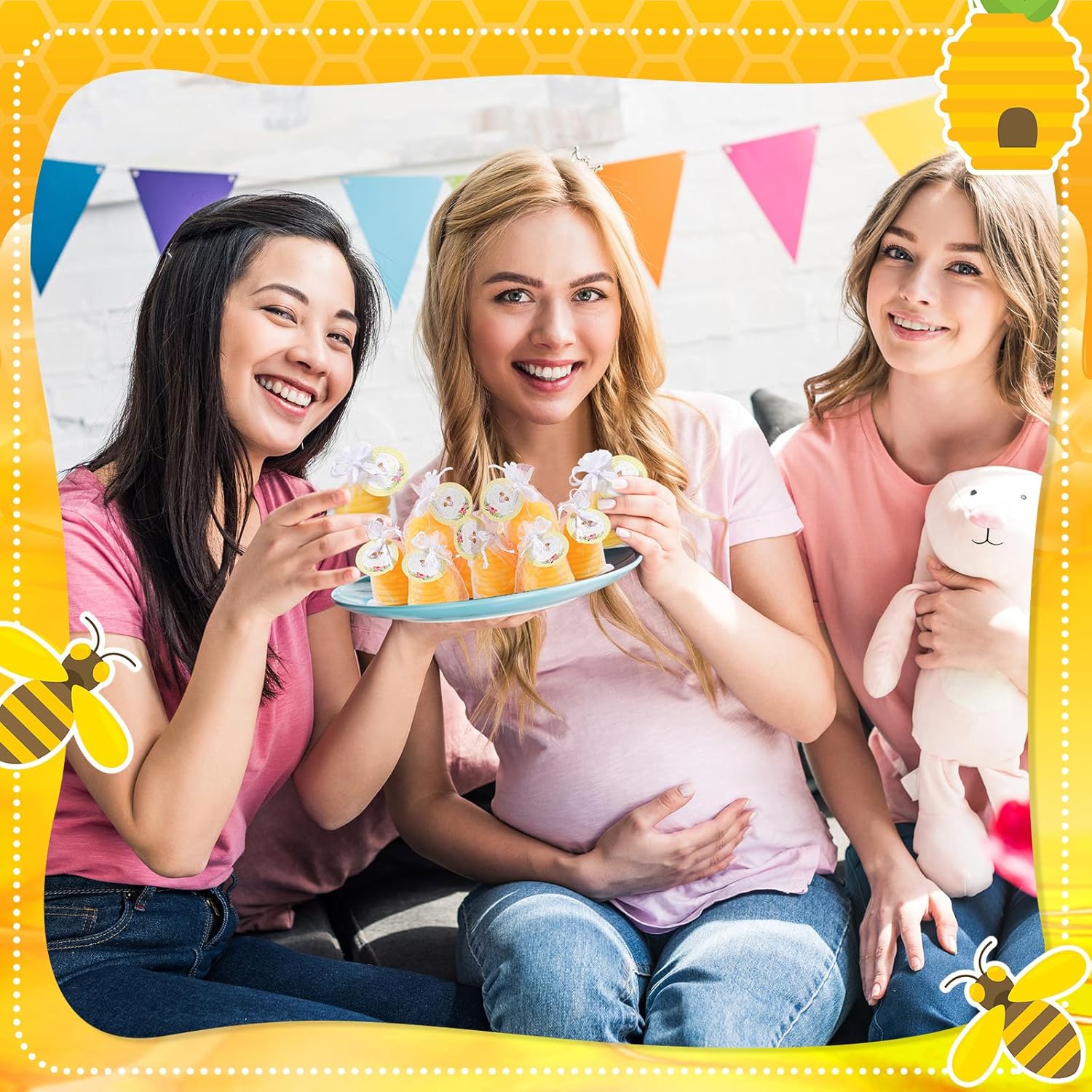 Features: With their compact sizes, these baby shower soap favors for guests are easy to carry and store. The organza bags provide a handy and charming storage way for the soap and the card tag, making it simple for your guests to take home and cherish after the event. The thank you card of the honey bee gifts is round, printed with cute bee, flower, heart and related words [thank you for be-ing here], novel and meaningful, to enhance your party atmosphere. Specifications: Material: Soap: glycerinBag: organza Card: cardstockColor: Soap: yellowBag: whiteCard: mainly yellowSize: Soap: about 1.77 inches in diameter at the base and 1.57 inches in heightBag: about 2.76 x 3.54 inches/ 7 x 9 cmCard: about 1.38 inches/ 3.5 cm in diameterPackage includes: 50 x Honeycomb soap50 x Organza bags50 x Thank you tagsNotes: Manual measurement, please allow slight errors on size. The color may exist a slight difference due to different screen displays.