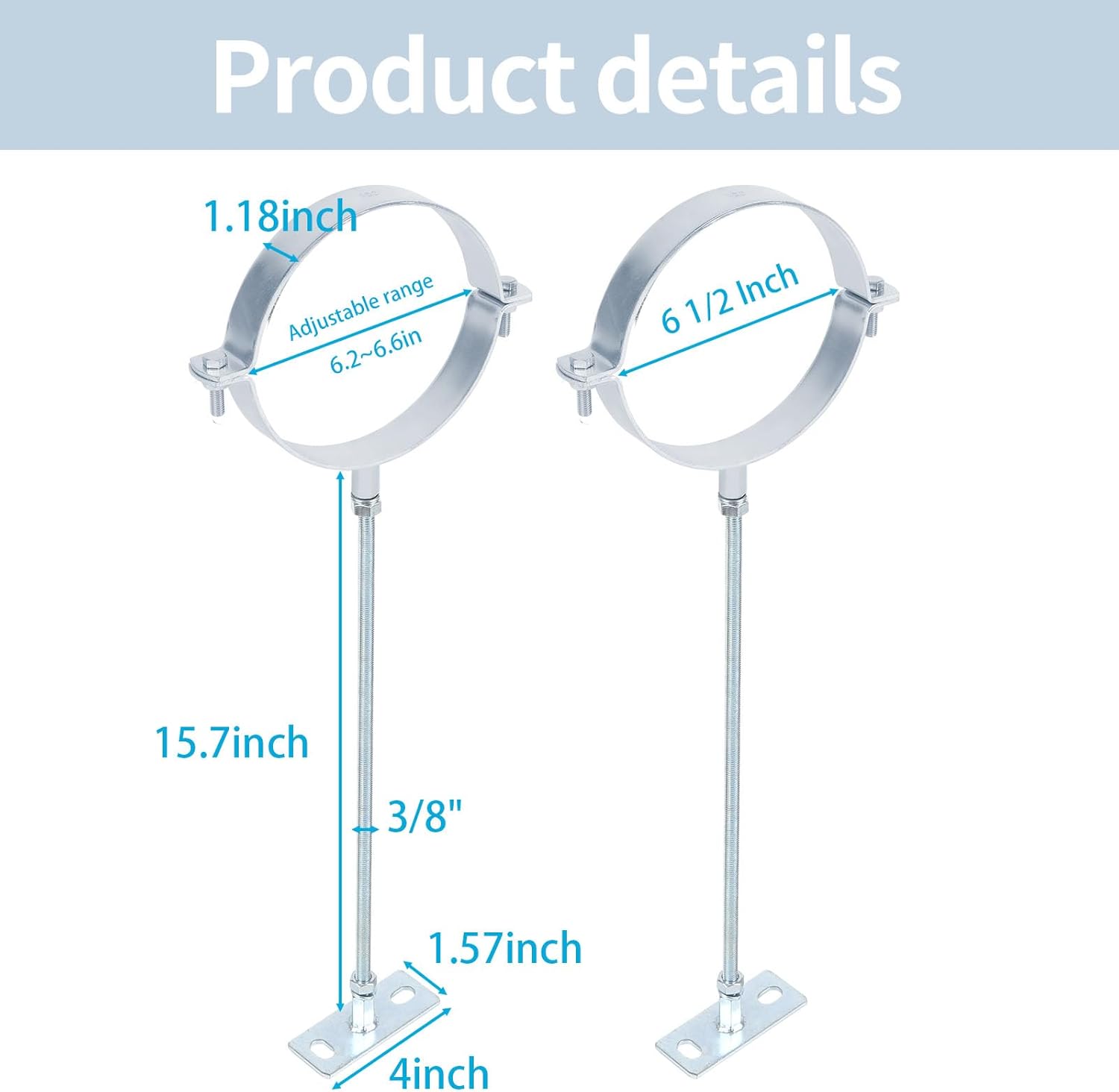 High-quality materials: The chimney tube bracket is made of high-quality steel with an electroplated surface, which is not easy to rust and deform, ensuring durability and strength, and can be used for a long time,Versatile Installation, This wall-mounted support chimney pipe rack is designed to adapt to a variety of installation scenarios, including metal pipes, drain pipes, PVC pipes, chimney systems, and plastic ventilation ducts, making it an ideal solution for your ventilation needs, Efficient Design,Our pipe support bracket effectively supports your chimney pipe, equipped with an extended 16-inch rod, the distance between the pipe bracket and the wall is 16 inches, and the screw can cut the appropriate installation length by itself, which can meet most installation occasions,Product Size,The inner diameter of the pipe bracket can be adjusted in the range of 6.2~6.6 inches, and is equipped with mounting screws, saving your time and effort while ensuring a firm fit for your ventilation needs, please read the product information carefully before purchasing the size as shown in the picture,Well-designed,The chimney bracket is carefully designed to ensure that all ventilation requirements are safeguarded, which securely holds your chimney system in place, minimizes movement and improves the overall safety and efficiency of your ventilation setup