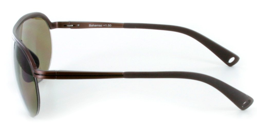 Bahamaz classic aviator bifocal sunglasses feature a super lightweight aluminum frame, adjustable nosepads and spring hinges for ultimate all day comfort. They are regular sun glasses on top with magnification of your chice at the bottom; perfect for outdoor reading and distance viewing. No longer will you need to carry multiple pairs of glasses.