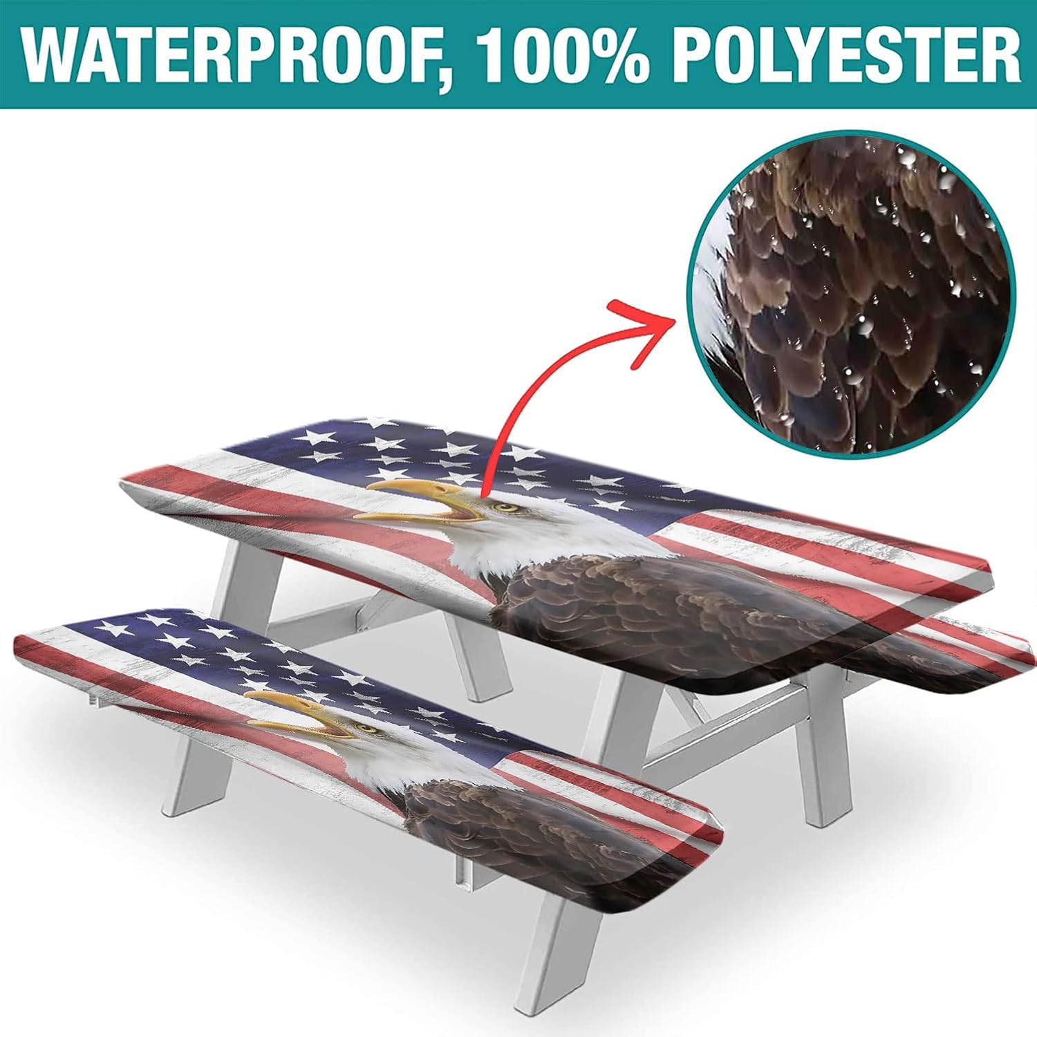American Flag Elastic Picnic Table Cover Waterproof for Table + Bench Fitted Polyester Backing for Outdoor/Picnic/Travel/Holiday/Party/Folding Table, tablecloths are spill and stain resistant.Dansfeng tablecloths are made of specially treated 100% polyester, which with water-resistant and wrinkle-resistant design. Don't worry if the liquid falls on the tablecloth, you just need to wipe it with a damp cloth. Of course, table protector is hand washable.Suitable for all seasons, this will be your best choice for your room or upcoming party.Features:High Quality Material: soft and smooth 100 percent polyester.Sizes: 28 x 72 Inch Rectangle Tight Fit for Picnic Table;12 x 72 Inch Rectangle Tight Fit for Picnic Bench 3-pc Set.Spill-proof, oil-proof, water resistance, wrinkle resistant. Protect table & decorate room & create an atmosphere you love. Perfect for spring,summer, party, patio, holiday, picnic, wedding, ceremony, and more.Care is Simple:Hand washable in cold waterDo not bleachNo dry cleaningIron in low heat if required100% Satisfaction Guarantee:Did you know your purchase includes an extended 60 days warranty should a problem arise? If you have any question, please don’t hesitate to contact us.