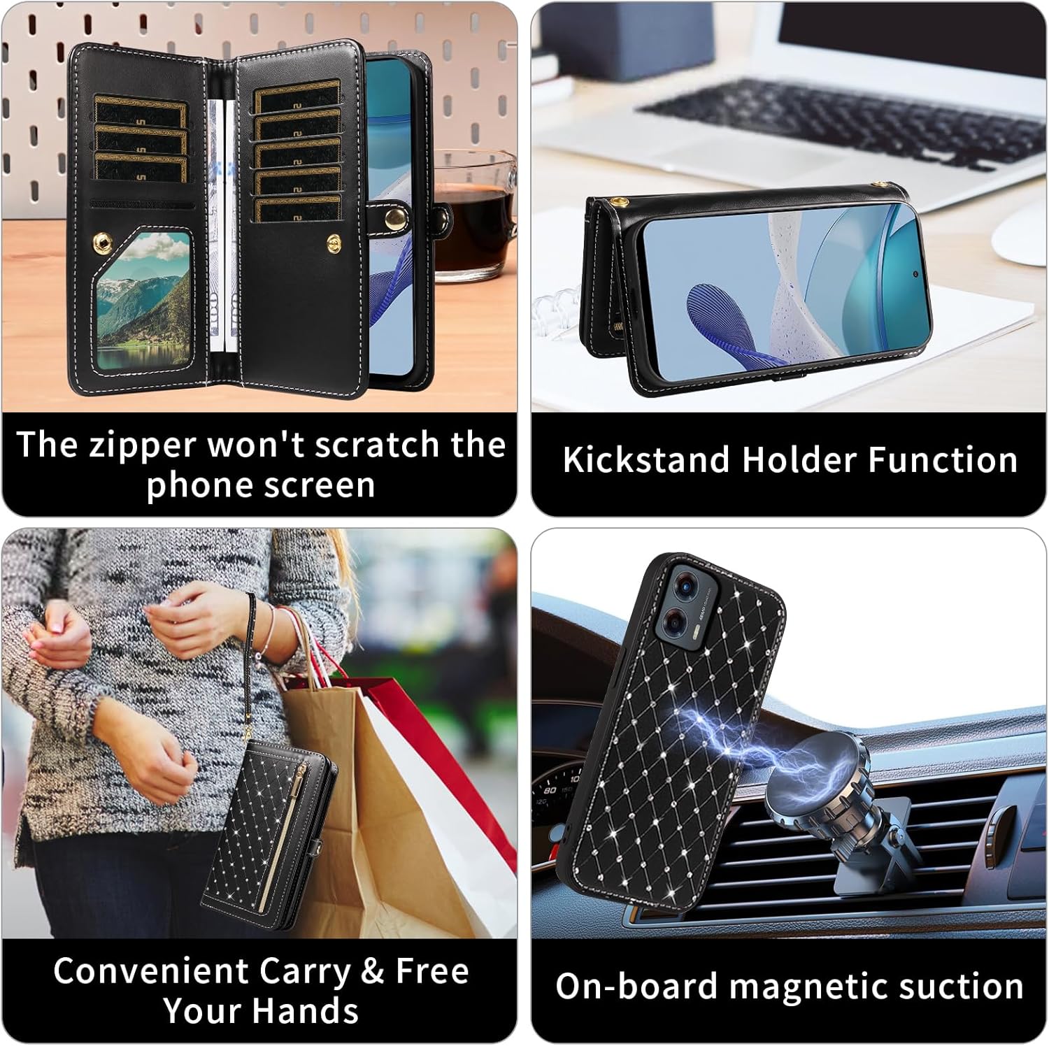 【Compatible Models】: Compatible with Motorola Moto G 5G 2023, NOT compatible with Moto G 5G (2020) or other devices.【Package includes】: We will send the phone case with 1 piece tempered glass screen protector + 1 detachable wrist strap + 1 detachable crossbody strap. Adjustable straps can help you find a comfortable length.It would be a nice gift for your lover, your family and your friends.【Support Detachable & Magnetic Car Mount】: You could use the removable back cover as a simple protective back cover alone, the back cover with built-in metal disk can be attached to a magnetic car phone holder, but please notice that it don't work with wireless charging.【Premium Service】:Asuwish provides 24 hours professional & nice customer service. if you have any doubts please feel free to contact us by mail,we will provide satisfied solutions to you.