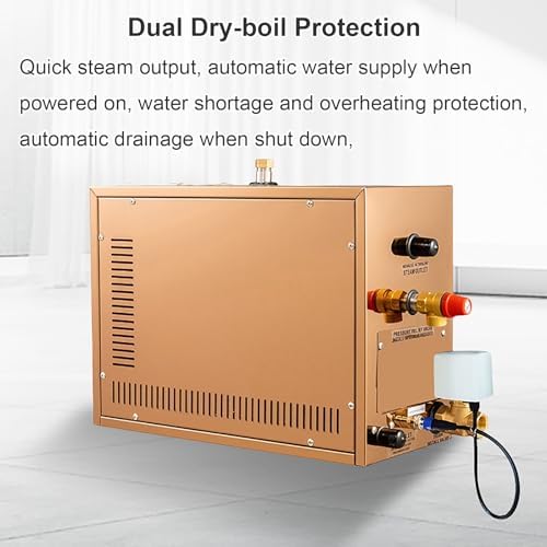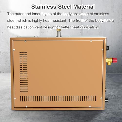 Transform your everyday shower into a luxurious steam room with our premium steam shower generator, designed to deliver a spa-like experience right in the comfort of your home. Enjoy the benefits of a soothing steam bath whenever you desire, promoting relaxation and wellness for you and your family. This versatile steam generator offers seven power options, making it suitable for various settings including residential homes, hotels, bathhouses, and beauty salons. Choose the right wattage to match your space and enjoy a customizable steam experience tailored to your needs. **Product Details:** - **Product Name:** Bathroom Steam Bath Generator - **Specifications:** - **4.5KW:** Dimensions 17x7x12 in, Voltage 220V, Suitable for areas up to 4.5m³ - **6KW:** Dimensions 17.5x7.8x12.5 in, Voltage 220V, Suitable for areas up to 6m³ - **8KW:** Dimensions 18x8x13 in, Voltage 220V, Suitable for areas up to 8m³ - **9KW:** Dimensions 18.5x8.6x13 in, Voltage 220V, Suitable for areas up to 9m³ - **12KW:** Dimensions 19x8.6x15 in, Voltage 380V, Suitable for areas up to 12m³ - **15KW:** Dimensions 20x9x16 in, Voltage 380V, Suitable for areas up to 15m³ - **18KW:** Dimensions 20.5x9.5x16.5 in, Voltage 380V, Suitable for areas up to 18m³ - **Frequency:** 50Hz-60Hz - **Time Setting:** 30 minutes to 12 hours - **Temperature Setting:** 77°F to 131°F - **Controller:** Touch screen - **Casing Material:** Stainless steel - **Heating Element Material:** 316 stainless steel, UL certified - **Water Tank Material:** 304 stainless steel - **Water Inlet Size:** 1/2 in - **Water Outlet Size:** 1/2 in **Packing List:** - Steam generator x 1 - LCD Controller x 1 - Connecting Wire x 1 - Temperature Probe x 1 - Steam Nozzle x 1 - Safety Valve x 1 - Electric Drain Valve x 1 - Solenoid Water Inlet Valve x 1 Elevate your bathing experience with our steam shower generator, designed for quality and efficiency. Perfect for those who want to unwind after a long day or enjoy a rejuvena...