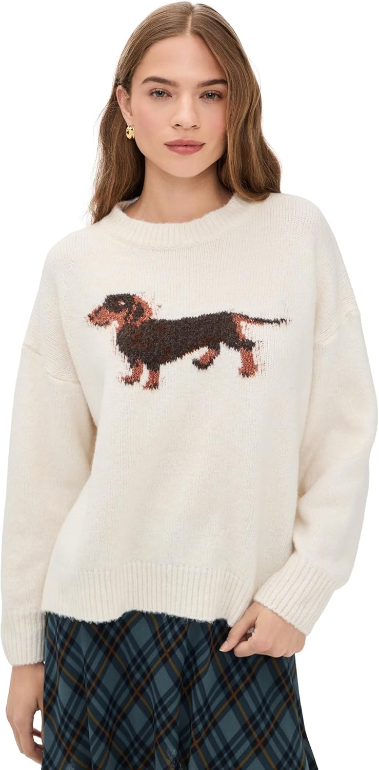 | Style Name | Cable Knit Crew Neck Long Sleeve Dog Graphic Sweater |