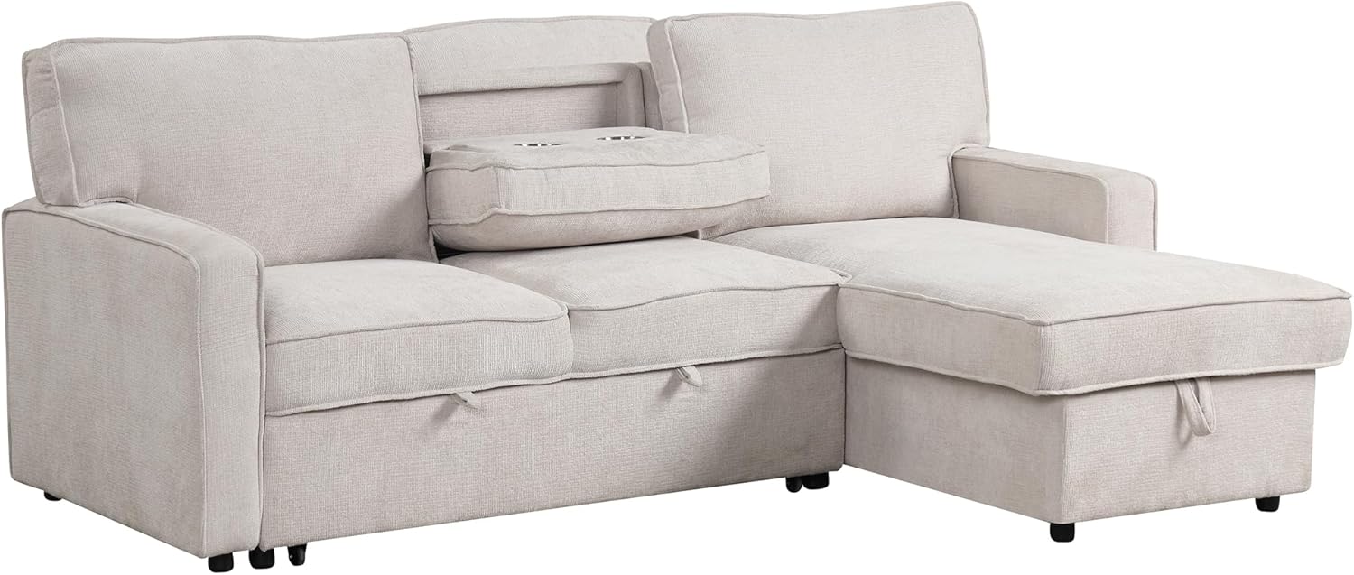 | Item Type Name | Ball & Cast L-Shaped Pull Out Sofa Bed with Storage Chaise Ottoman,Modern Upholstery Sleeper Sectional Couch W/ USB Port & 2 Cup Holder on Back Cushion,Space Saving,Furniture for Livingroom Home,Beige |