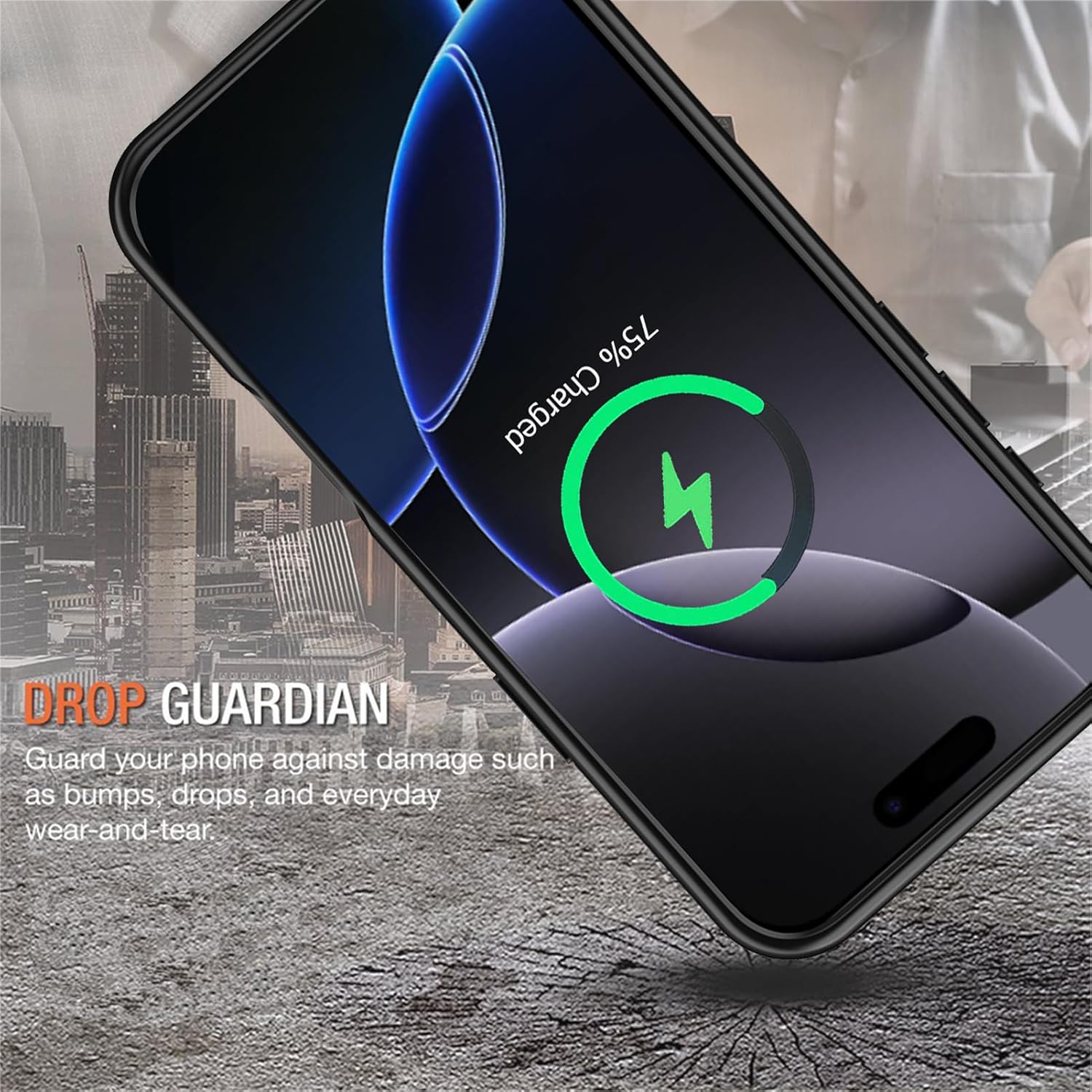 NOTE: * This battery case is only suitable for iPhone 15 Pro (6.1 inch), not suitable other models. Features: Provides 200% extra battery life for your iPhone 15 Pro. 100% compatible with all iOS systems. No excessive bulk and compact design for portability, and fits easily in your hand or pocket. Allow you to sync the data from your iPhone 15 Pro to your PC and charge your phone without taking the battery case off. This battery case supports iPhone earphones, besides, also compatibles with iPhone AirPods or any other wireless Bluetooth headphone accessories. ★★★How to use? Step 1.Please fully charge the battery case before using the product. Step 2.Please charge the battery case with the apple cable.(Charging cable included in the package ) Step 3. When you want to charge your phone through the battery case, make sure the phone is tightly closed at the bottom of the case, then press the power button for about 3 seconds to start charging. Step 4. When you want to stop the battery case to charge the phone, press the power button for about 3 seconds, it will stop charging. Specification: Battery type: Lithium-polymer Capacity: 10000 mAh Working Temperature: 0℃-45℃ Input: DC5V/2.0A Output: DC5V/1.0A Box include: *1x User manual *1x Tempered Glass Screen Protector *1x Battery case *1x Data cable