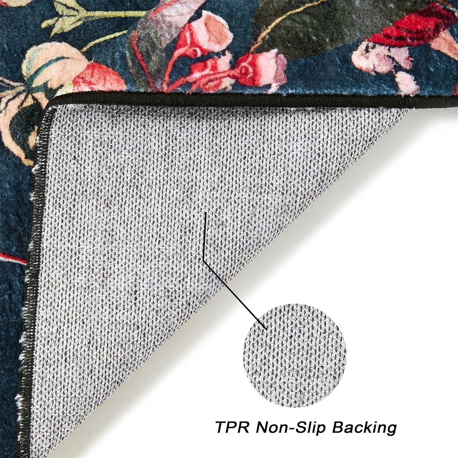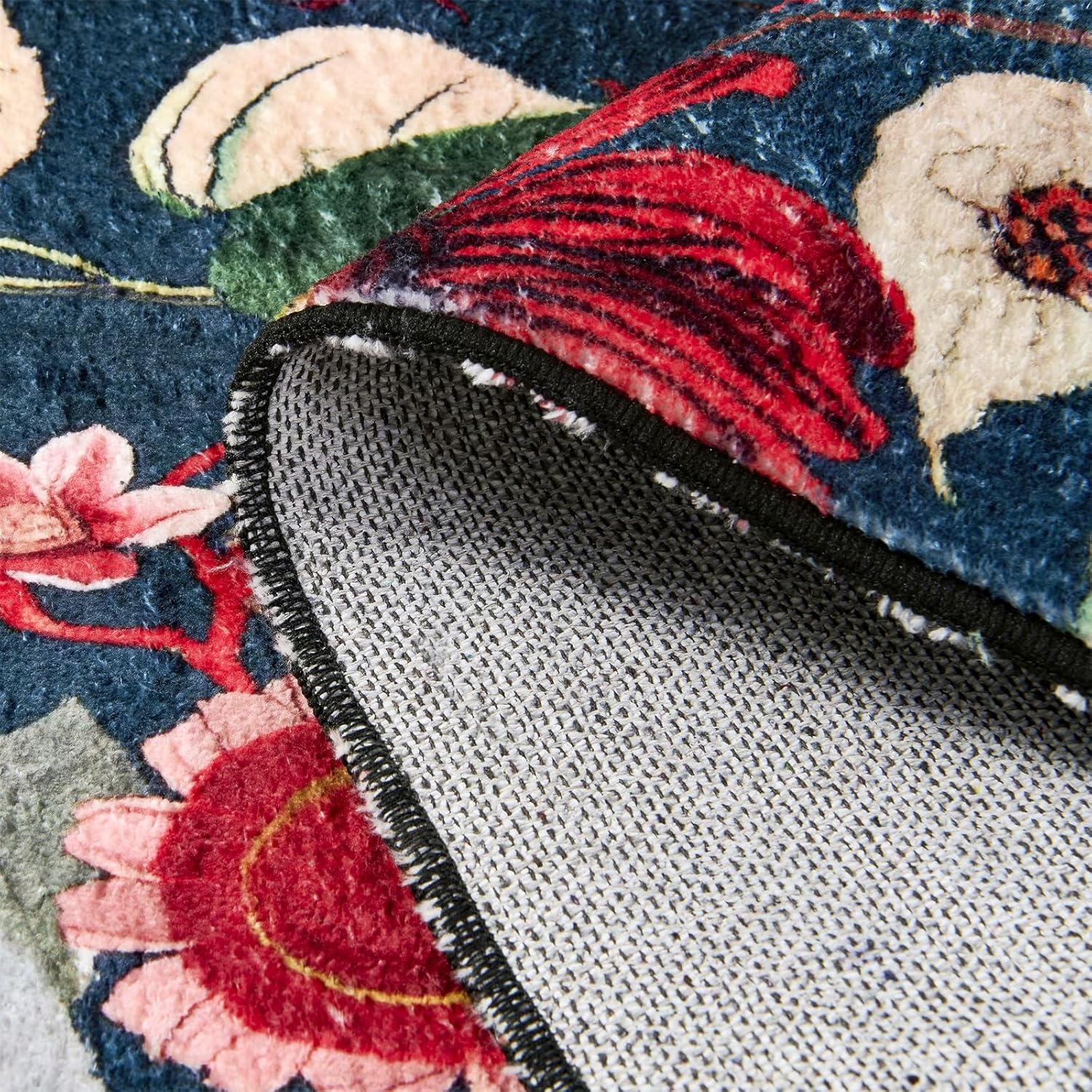 ★Estmy Boho Colorful Red Flowers Leaves 5x7 Accent Rugs Non Slip Washable, Moody Dark Floral Bedroom Accent Carpet. This isn't your typical accent rug (but your tastes aren't typical, either). You're not afraid to break out of the (right angle) box and beautify bare floors with novel shapes and bold colors. This anything-but-cookie-cutter accent rug is all you -- adding a lot more fun to what's underfoot. ★Questions & Answers: 1.Q:Does this country cottagecore rug shed much? A: Not at all!! This spring rug keeps it's fluff and is nice. I have mine in the bathroom so its gets a lot of traffic and has held up very well in the couple of months I had it. 2.Q: Can you machine wash and vacuum this hippie area rug? A: Yes for sure, it machine washes and vacuums just dine. No issues at all. But air dry would last longer. 3.Q: My floor is very glossy and slippery when wet. I'm scared if i get on , it will be very slippery, do you recommend anything that will hold it down? A: We make a heavy duty TPR back to prevent it from slippery and they are fairly reasonable. 4.Q: How thick is the fluff on this summer garden rug? Can I use it as a doormat? A: The pile measures 0.1 inch thick and the rug is 0.3 inch height overall. Indoor doormat is a great idea, but you need to check the height between the door and the floor to make sure it don't get stuck.