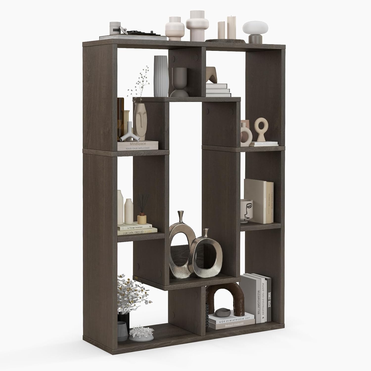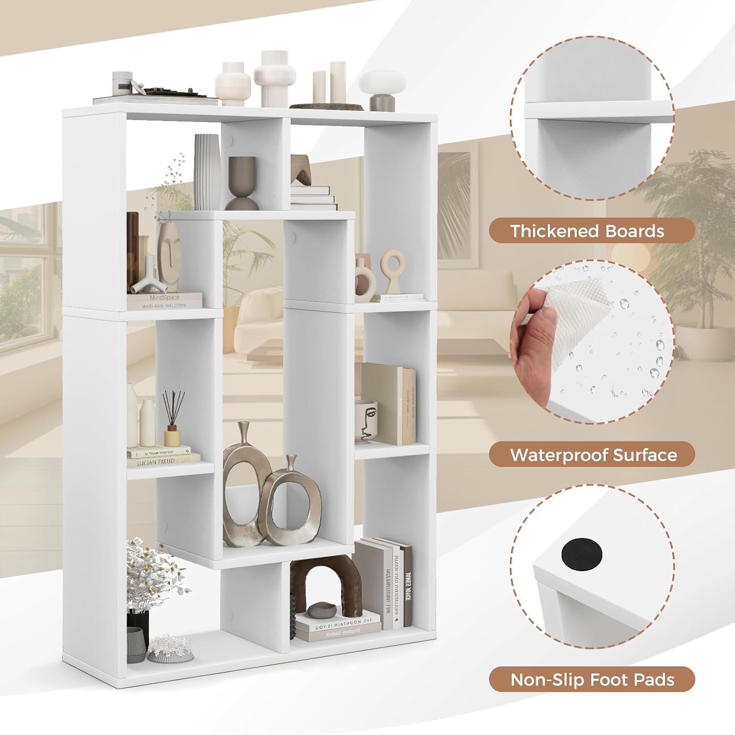 DescriptionEnhance your living space with our versatile geometric bookshelf, designed for both storage and display purposes. Featuring 7 cubes and a spacious top, this shelf provides ample storage while adding a touch of modern aesthetics with its geometric cube design. Crafted with premium thickened boards, this bookshelf ensures long-lasting sturdiness. Safety is a priority, with anti-toppling devices included for secure daily use. The simplistic style allows it to seamlessly blend into any room in your home. Invest in this functional and stylish piece to elevate your storage solutions effortlessly.Features·Simple modern style fits with kinds of decorations·Unique geometric design adds aesthetic·7 cubes and large top with ample storage space·High quality boards for sturdiness·Anti-toppling devices for safety·Detailed instruction easy to assemble·Smooth and waterproof surface easy to clean·Multifunctional shelf for various occasionsSpecificationMaterial: Engineered WoodOverall Dimension: 24’’ x 8’’ x 35.5’’/60cm x 20cm x 90cm(W x D x H)Net Weight: 26.5lbs/12kgTotal Weight Capacity: 300 lbs/135kgPackage Includes:1 x Bookshelf1 x Instruction