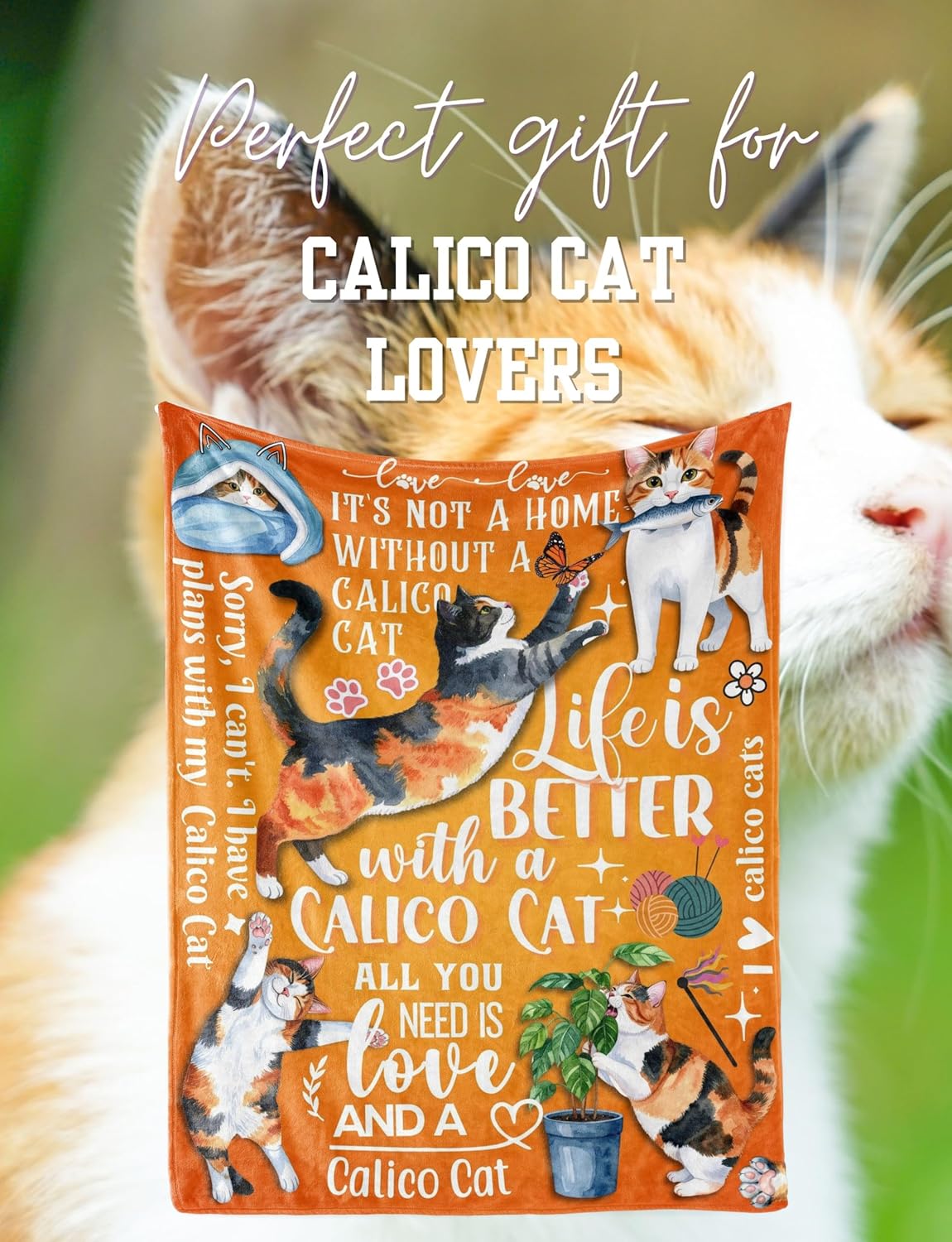 Huglanket Calico Cat Gifts for Women, Throw Blanket, Ideal for Christmas, Birthday & More Occasions, 50" x 65"