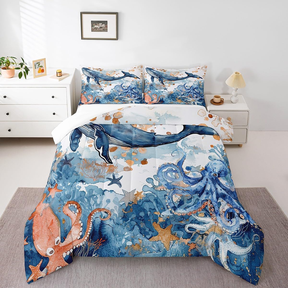 Best blessings: Makeover your bedrooms every season with our Comforter sets. Perfect item for your room, girls boys youth room, master bedroom. Also can order it for your mom, dad, sister, brother, grandma, wife, husband, daughter, son and all other beloved. Size Information: 1 x Twin size down comforter 68"W x 90"L, 1 x quilted pillow case 30"W x 20"L, 2pcs. 1 x Full size down comforter 79"W x 90"L, 2 x quilted pillow cases 30"W x 20"L,3pcs. 1 x Queen size down comforter 90"W x 90"L, 2 x quilted pillow cases 30"W x 20"L,3pcs. 1 x King size down comforter 104"W x 90"L, 2 x quilted pillow cases 36"W x 20"Lx,3pcs. Useful and practical: A luxurious product for homes, dorm rooms, hotels, guest rooms. Practical to use for being polyester, feels like cotton which is super soft and breathable. No chemicals used, No dye substance harming the health of you or your family. Unique design: Vivid Colors won't fade thanks to new 3D digital printing methods. These unique designs match well with various color palettes of your rugs, curtains, headboard, furniture, and all other decor accessories. Personalized: As manufacturers of digital printed home textiles, we follow current trends and bring you the latest home fashion. You can give it to your family or friend, relative or boyfriend girlfriend, or to yourself, the item should be interesting and authentic. Note: Machine washed in cold water. Do not bleach, Tumble dry low. The Bedspread and Pillow Shams are printed on the Front Side Only.