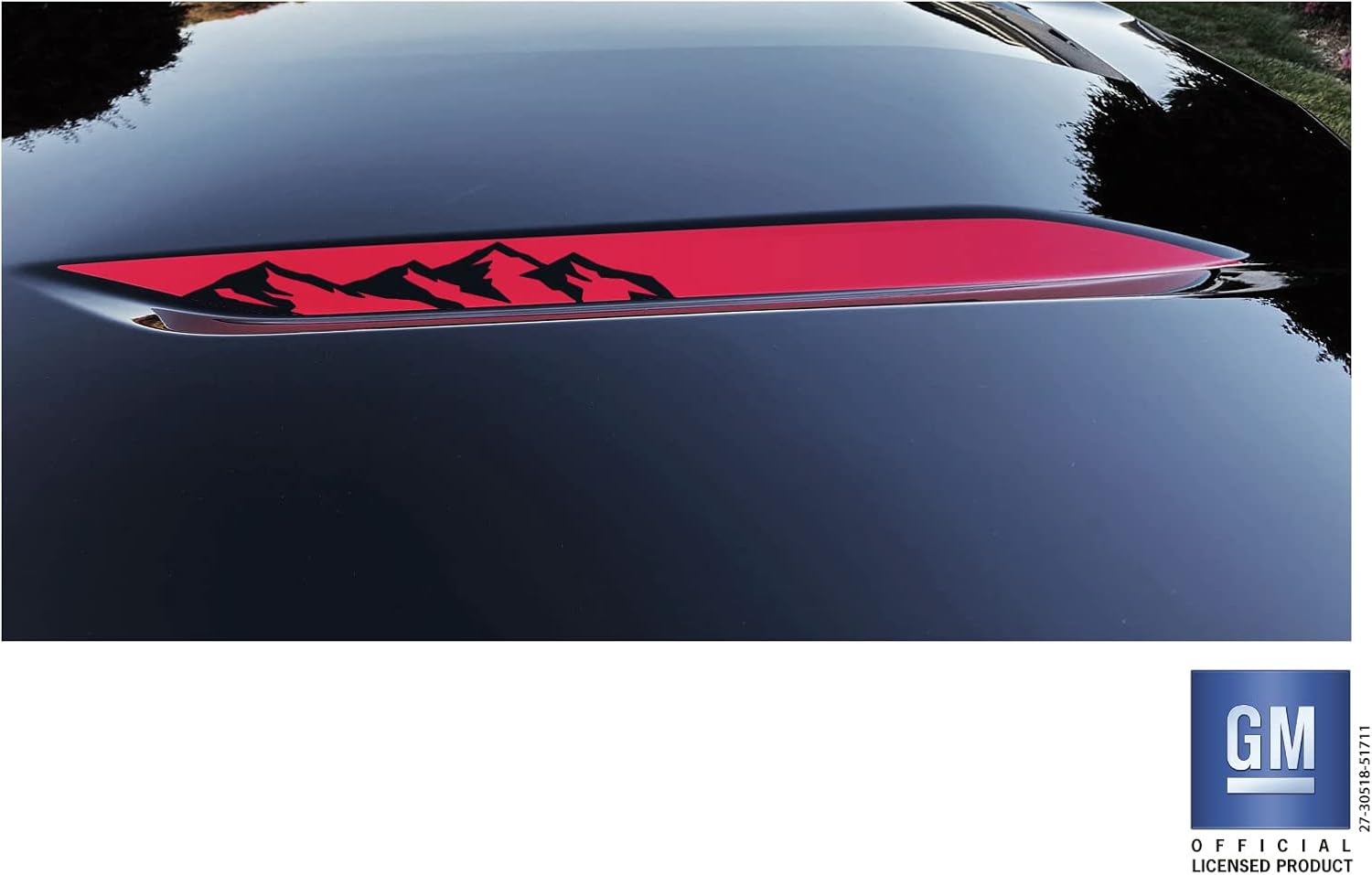 Chevy Silverado 1500 Mountain RED Hood Spear Set of (2) Chevy Silverado 1500 Mountain RED Hood Spears. You get 1 decal for each side of the hood Decal colors are RED. Mountains are cutout so it will show your truck's color. Awesome Accents for your Hood. Easy installation. Each Hood Spear measures 25" wide x 1.7/8" tall. Fits Chevy Silverado Truck Model Years 2019-2026. Set includes : Sealed retail package that contains (2) Decals. Decals have pre-applied application film. Decal preparation, positioning & installation instructions. Ships in a non-bendable box. OFFICIAL GM LICENSED PRODUCT LOGO AND SECURITY LABEL ON PACKAGE GENERAL MOTORS TRADEMARKS USED UNDER LICENSE TO EMBLEMSPLUS