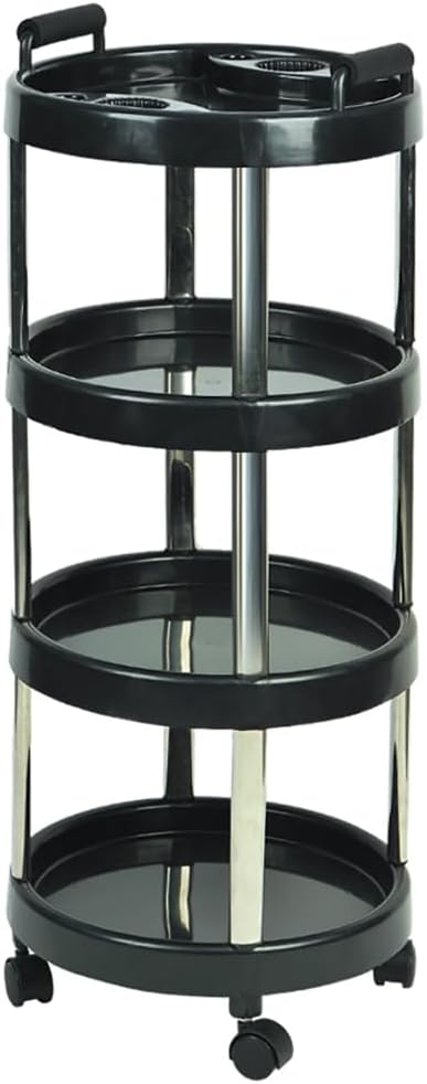 Festival Trolley on Wheels Folding Camping Wagon Portable Camping Cart,Product information: Product name: Hairdressing tool cart Color: black Product size: round basin diameter 355mm × height 880mm Material: stainless steel support frame, plastic basin is ligh