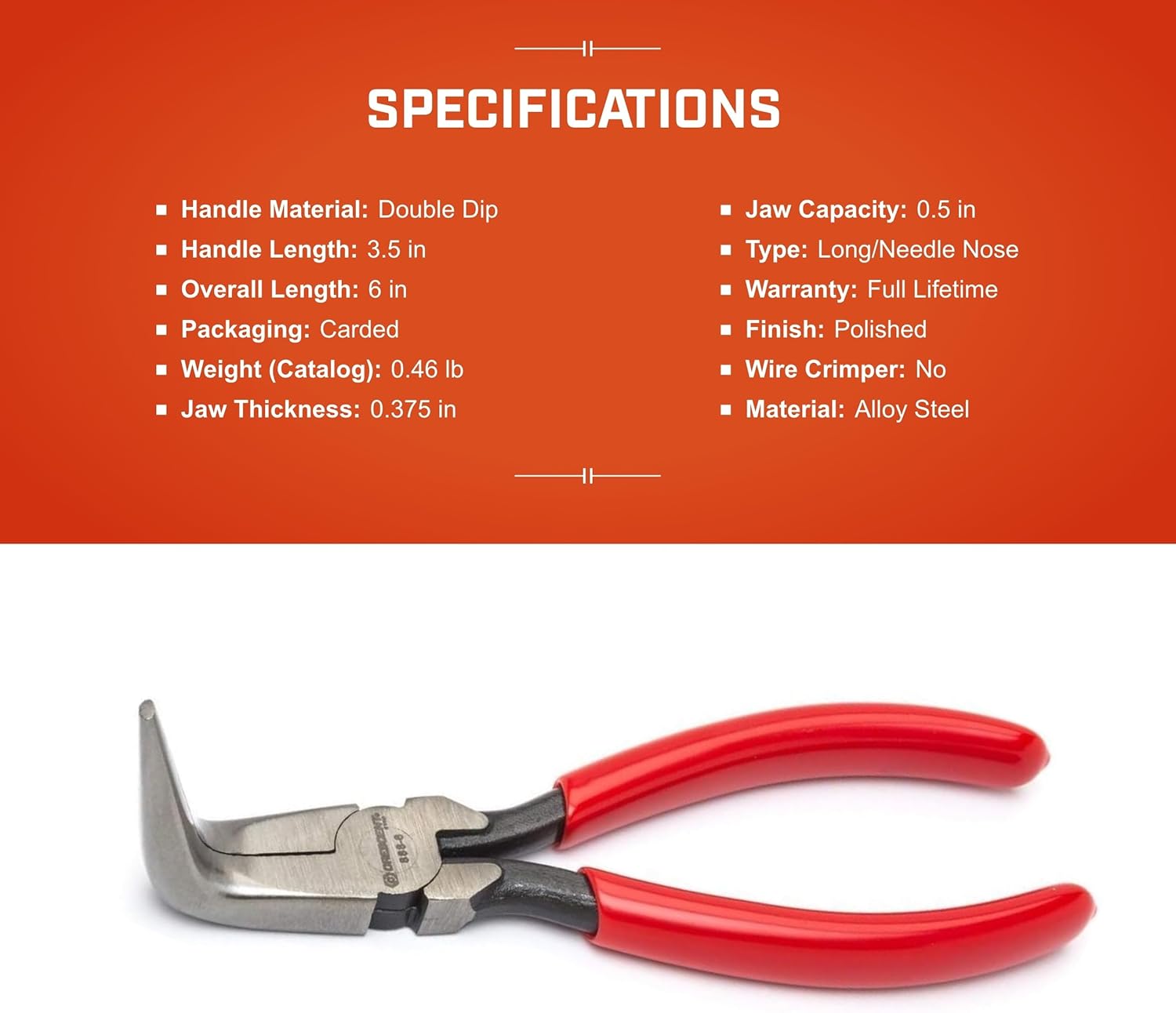| Included Components | (1) 6" Dipped Handle Bent Needle Nose Pliers |