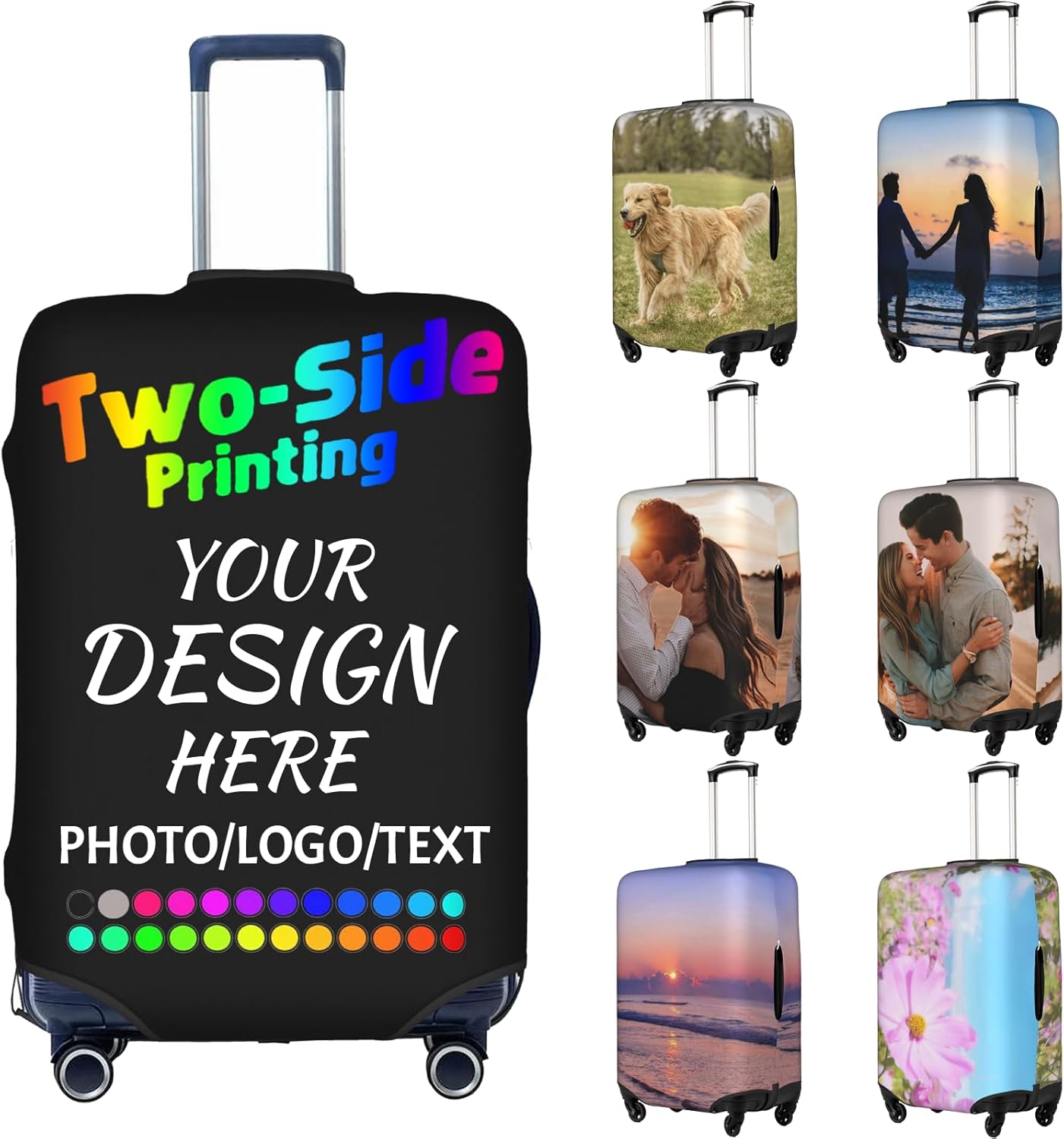 About Luggage Cover1. Made of durable polyester material2. Our luggage cover has double-printed and Personalized design so more beautiful.3. Thickness cover can protect your luggage against scratch and dust4. Double-stitched all over, full of stretch and high elasticity5. Easy to fit and remove, extremely durable and washable fabric6. Highlight your personalized, don't worry to misplace your luggage7. 4 sizes available to fit almost any luggage8. The cover doesn't restrict any wheel movemeSize Description: 4 sizes available to fit almost any luggage. Please refer to the data to measure the height, width and depth of the suitcase luggage.Size SHeight: 18.8 - 20.8 inWidth: 12.5 - 14.2 inThickness: 7.8 - 9.4 inSuitable for 18-21 inch luggageSize MHeight: 22.8 - 25 inWidth: 14.6 - 16.1 inThickness: 9 - 10.6 inSuitable for 22-24 inch luggageSize LHeight: 26 - 28 inWidth: 16.5 - 18.5 inThickness: 10.2 - 11.8 inSuitable for 25-28 inch luggageSize XLHeight: 28.3 - 31.5 inWidth: 18.9 - 21.2 inThickness: 11.4 - 13 inSuitable for 29-32 inch luggageAttentions: Before you buy it ,please affirm:1. We are selling luggage cover only ,no suitcase. 2. Please measure the size of your suitcase so that you can get the right size product. If your luggage is soft shell style,please order a bigger size.Excellent Service: We are committed to providing quality service to our customers. If you encounter any problems during the customization process, we will do our best to provide assistance and support. Please feel free to contact us, and we will be dedicated to serving you.