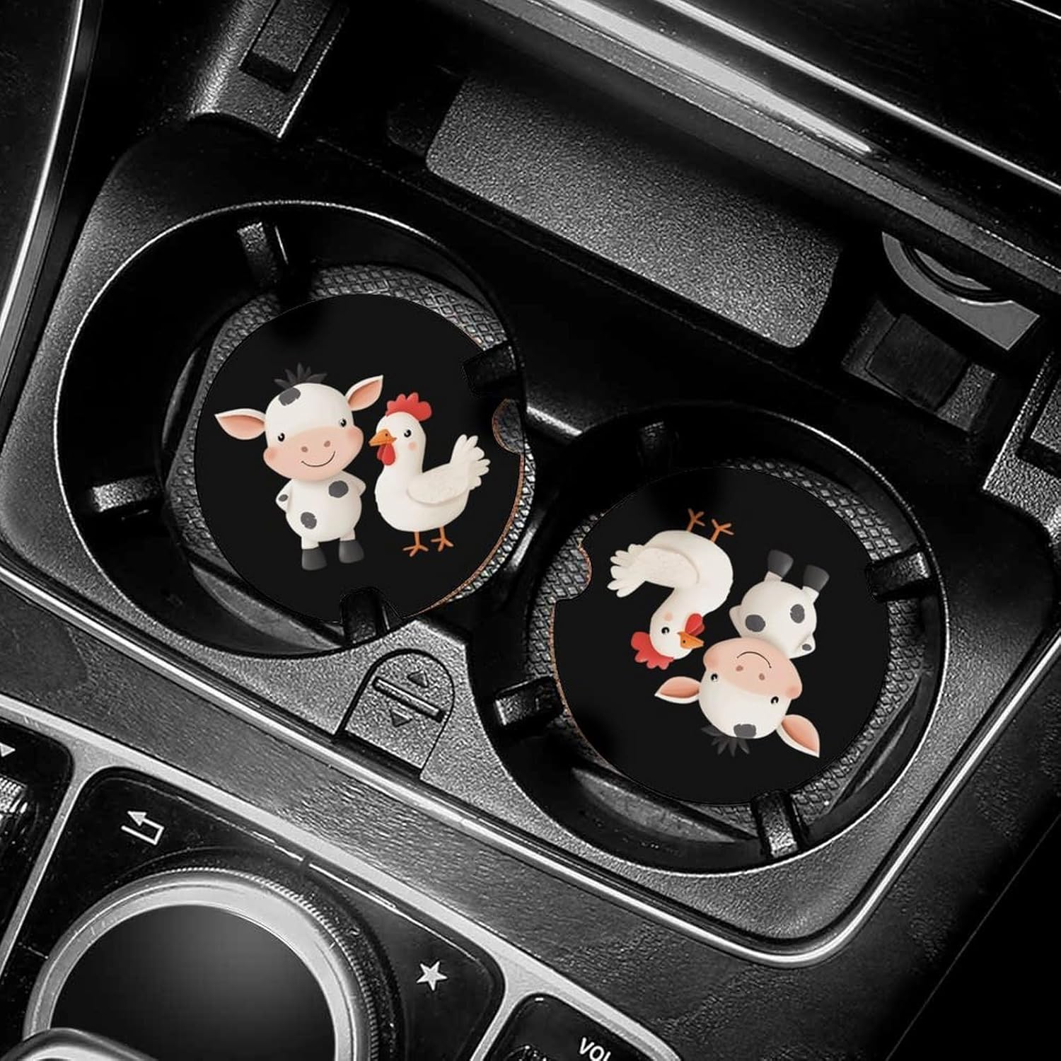 car coasters,coasters set of 6,coasters set of 4,car cup coasters,cup holder coasters for car Round Wood Car Cup Holder Coaster 2.56 Inches Cute Absorbent for Drinks Coaster Auto Interior Decorative Accessories with Funny Pattern Design