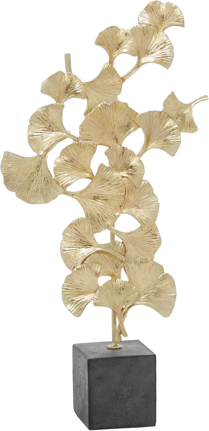 Contemporary accent statue is molded with polystone, applied with a satin gold finish, and is attached with a metal welded base. Satin silver home decor figurine showcases abstract botanical shapes with textured leaves on a thick cube base. Wipe clean with a dry cloth. Let these accent pieces provide a sense of style to your home atmosphere by displaying them on top of a shelf, countertop, mantel, or an accent table. Place this floral home decor statue as a centerpiece in your living room, complementing any color scheme or pattern. Designed with felt or rubber stoppers at the base that prevent scratching furniture and table tops, as well as sliding around. This item ships in 1 carton. Please note that this item is for decorative use only. Polystone sculpture makes a great gift for any occasion. Suitable for indoor use only. This item ships fully assembled in one piece. This is a single silver colored statue. Contemporary style.