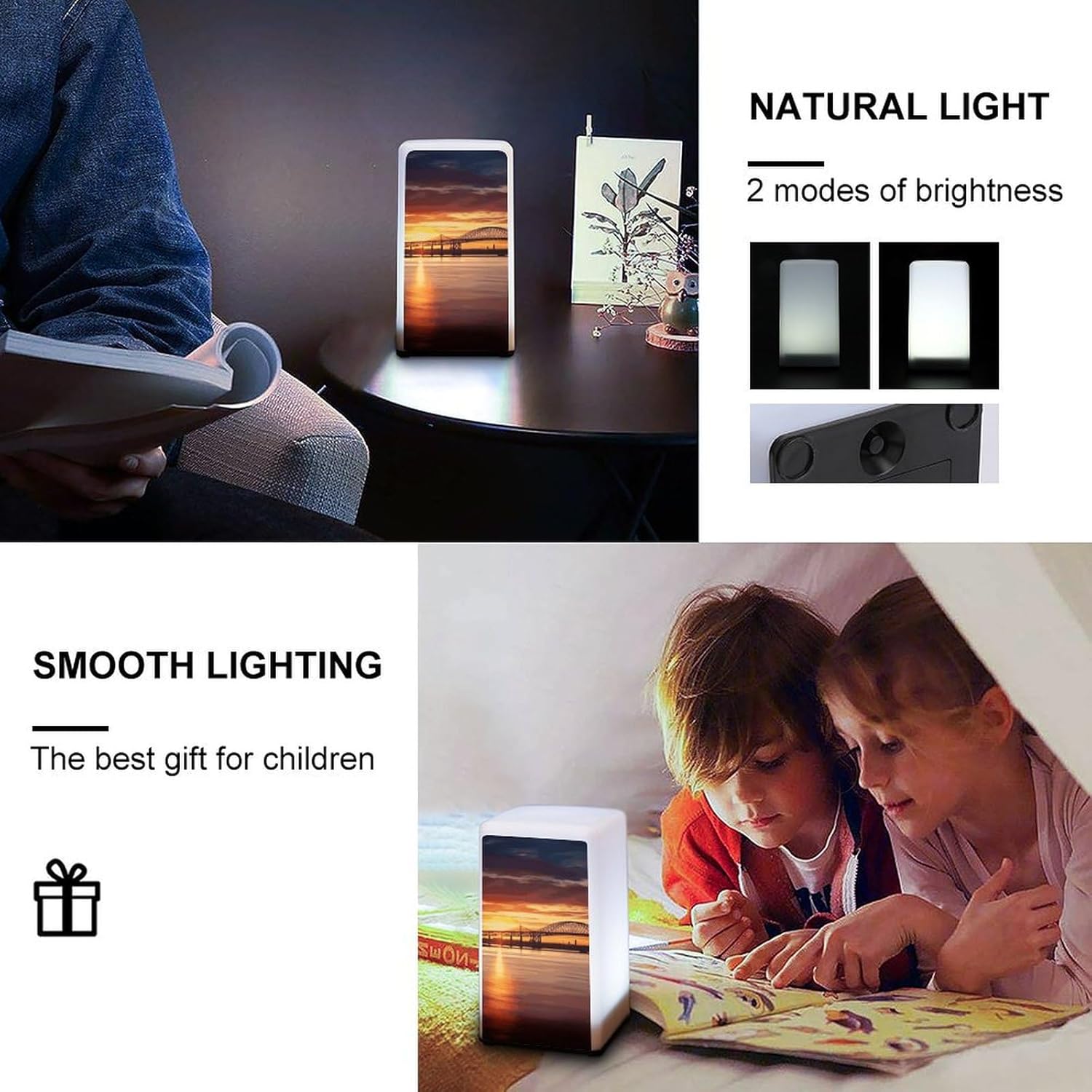 With a strong, impact-resistant plastic construction, this Newark Bay Bridge And Sunset printed small bedside table is durable enough to withstand accidental knocks and splashes, making it an ideal lighting companion for bathrooms, kitchens and more. The carefully designed rounded edges ensure safety and fit in any homeThis cordless lamp is ultra-portable, meaning it won't take up much space on your desk or bedside table. And it's battery-powered so you can get light wherever you need it - in the bathroom, hallway, or even outdoors (note: not rechargeable)It easily adjusts the brightness to suit any activity, so it's versatile! In the bedroom, it's a bedside lamp, where the soft light helps you fall asleep easily without the harsh light. In bars and lounges, it creates a warm and inviting atmosphereThis mini lamp combines classic style with modern functionality, making it an ideal gift for friends, family or colleagues. This thoughtful gift is sure to surprise them with a sense of style, practicality and convenience