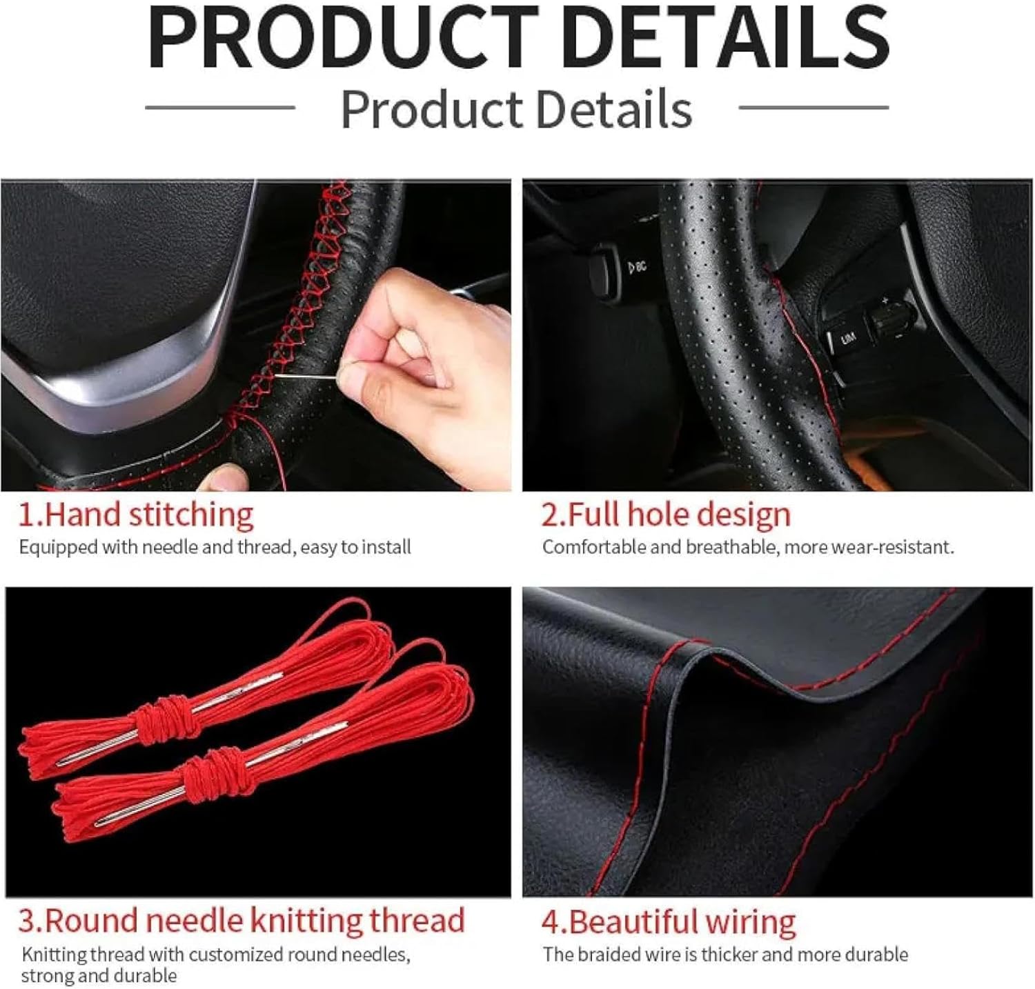 Compatible Vehicle: for Nissan for Patrol Y61 1997-2003 2004(Before buying, please confirm that your car steering wheel is the same as the steering wheel in the picture).【Product Name】Car Steering Wheel Cover.【Material】Black Genuine Leather.【Sewing Thread Optional Color】Black/Red/Blue.Why do you need this car steering wheel cover?🧵Hand-sewn, enjoy the fun of DIY sewing.🧵Good breathability, easy to clean, no odor.🧵Protect your car steering wheel and your hands.🧵Beautiful appearance, add style to your steering wheel.🧵Keep the steering wheel warm in winter and cool in summer.🧵Made of premium genuine leather,soft and delicate to the touch.🧵Non-slip, stable, wear-resistant, heat-resistant and cold-resistant.🧵The leather steering wheel exudes a sense of luxury and sophistication.🧵The steering wheel has a better grip, giving you more control on the road.📦Package Included:☆.1 x steering wheel cover.☆.1 x needle and 2x sewing thread (sewing the steering wheel cover).☆.1 x thimble (protect your hands).✨Friendly Reminder:▶1.This product is a steering wheel cover, not a steering wheel, Please do not remove the original skin before installation!▶2.Before purchasing, please check and compare your car's steering wheel to the one in the picture to make sure it is the same shape.(Our steering wheel cover is a customized product, if there is difference, it will not fit!)▶3.You can install it yourself by referring to the installation video on the video website, and enjoy the fun of hand-sewing. Or ask a professional to sew it for you.✉Excellent After-Sales Service:Dear buyers, if you encounter problems during the use of the product, please don’t worry and panic, please contact us as soon as possible, we will solve your problems for you 24 hours!