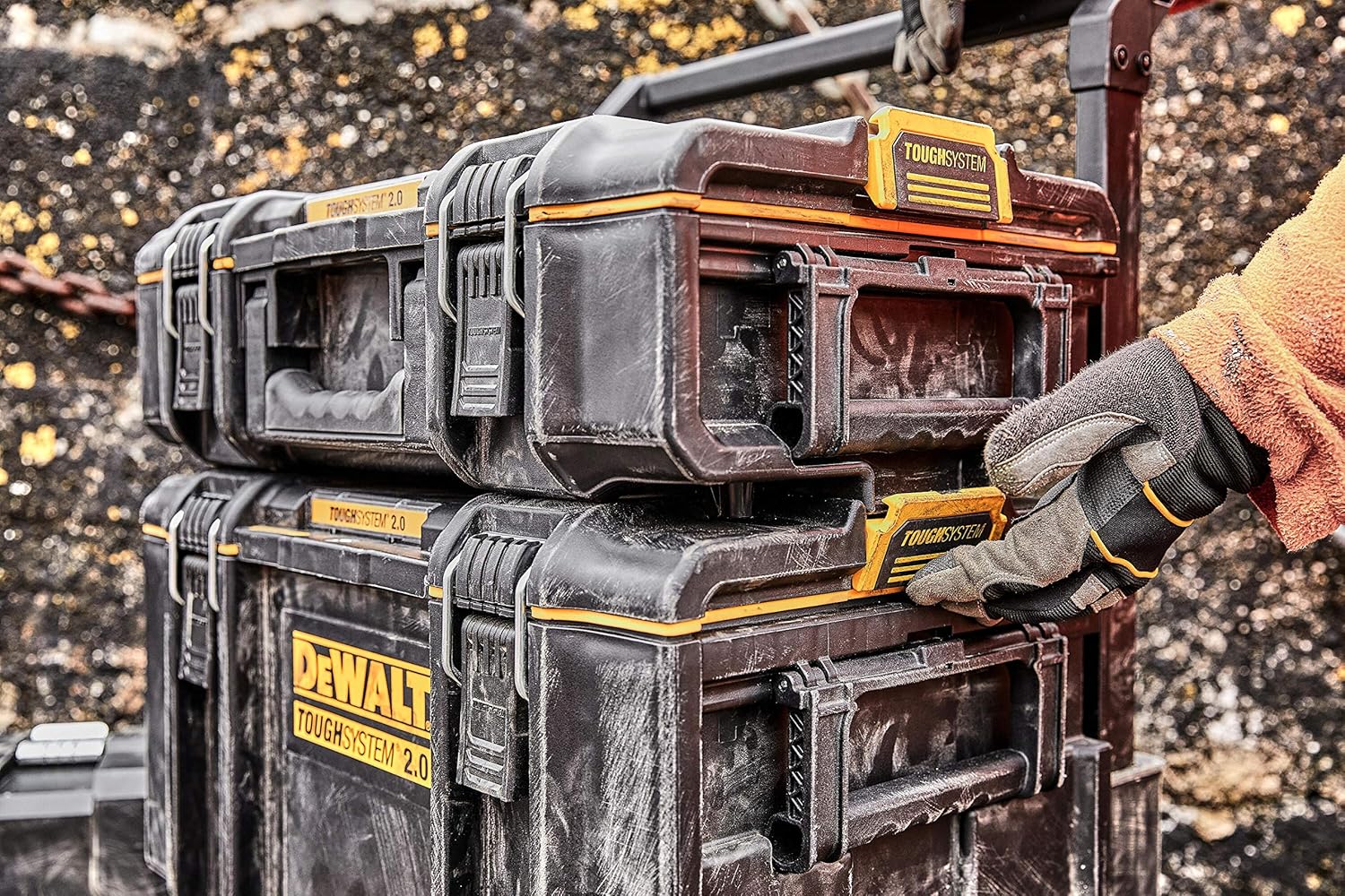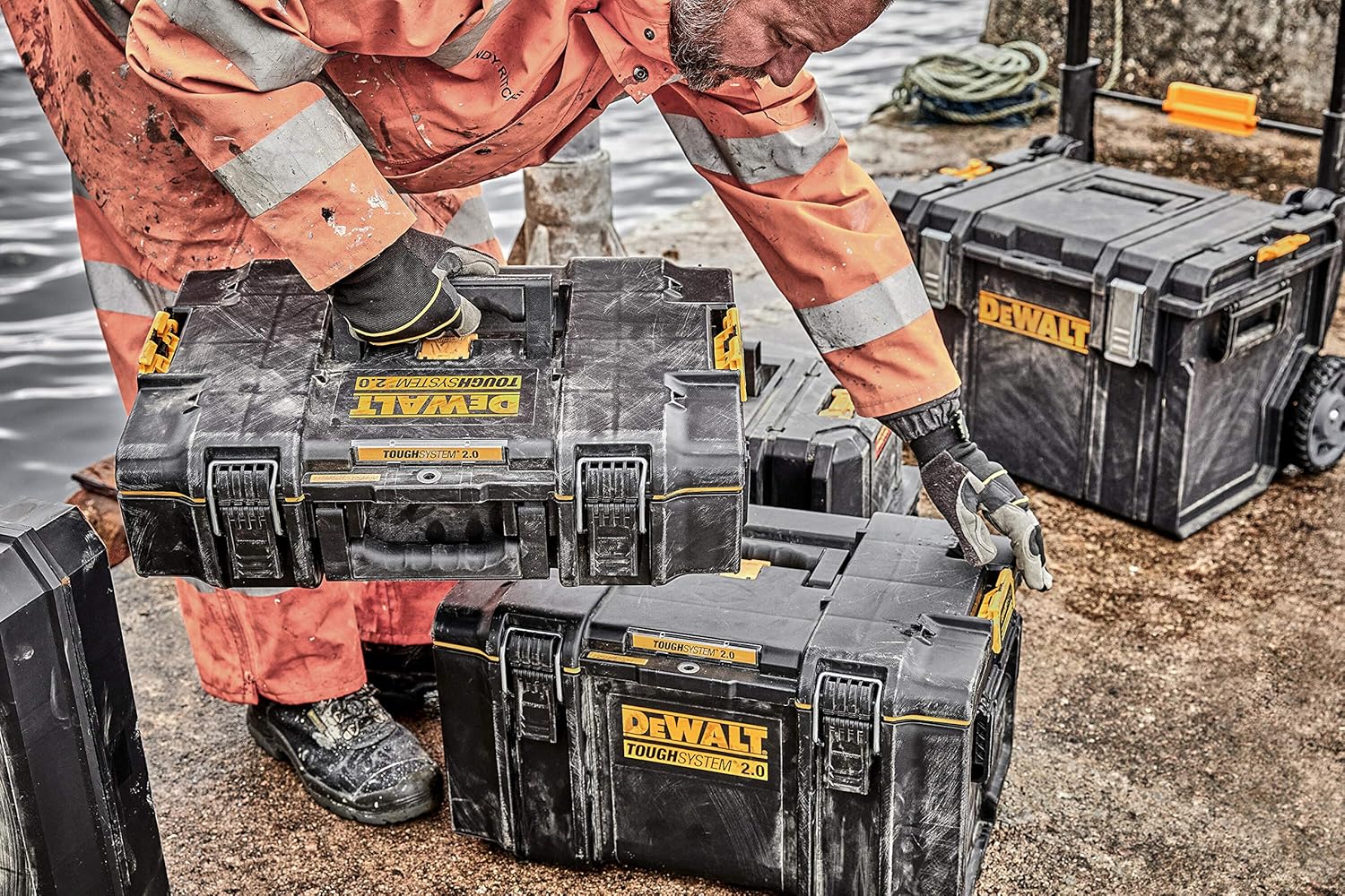 The DEWALT TOUGHSYSTEM 2.0 Toolboxes feature a high-performance seal in the lid, this ensures they are dust-tight and waterjet resistant (IP65) to withstand the most severe weather. With easy close, metal wire front latches for easy one-handed operation. A metal-reinforced padlock eye provides increased security.