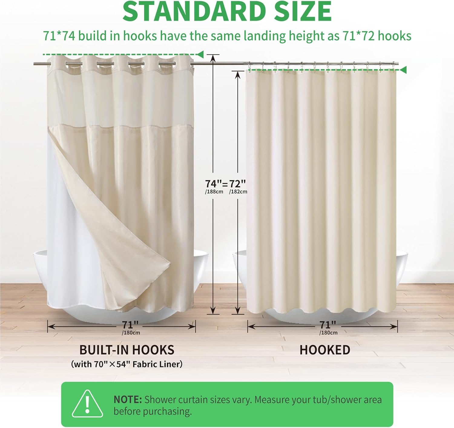 | Lining Description | shower curtain with snap-in liner |