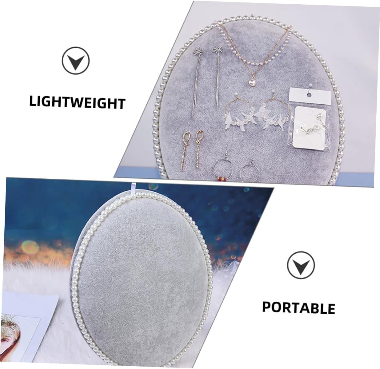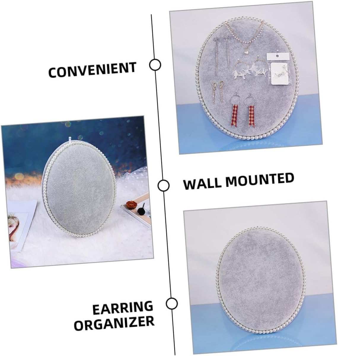 Package Include 1 x earring organizer Characteristics -Material:Lint, sponge, density board - Color: Grey -Product Info:Earring storage rack - Size: 32.50X25.50X3.00cm/12.77X10.02X1.18in - This wall-mounted jewelry rack provides a convenient and stylish way to store and display earrings, very useful earring display stand. ear studs display rack - Made from sturdy material, this jewelry rack not only looks great but also feels comfortable. - With its easy-to-install wall-mounted design, this jewelry rack can be quickly and easily set up Earring Stands. - Attention to detail and in the durability of this jewelry rack, ensuring that it will provide years of enjoyment girl earring holder. - The elegant oval board design adds touch of sophistication to any room, making it a beautiful addition to home earring holder for women.Goods Informationearrings holder for With its unique oval shaped board design and sturdy material, this earring stand adds a touch of elegance to any room.creative earring holder Its multi-functional design allows for easily storage and display of earrings, and other jewelry, making it a perfect addition to any home.girl earring holder This jewelry organizer is a must-have for earring display