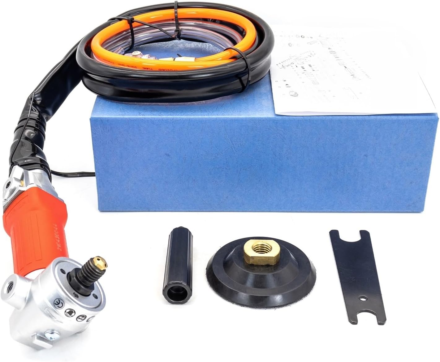 Feature: Pneumatic Air Wet Polisher with Rear Exhaust for Marble Granite Stone Concrete Sanding Machine can use 3", 4" and 5" pads ,The air -powered function could reduces dust and improves environment protection, poses no electric hazards, and the rear exhaust keeps exhaust away from your stone . Economical and reliable. Air Consumption 16cfm Air Pressure 90psi Shaft Thread 5/8"-11 M14 M16 Air inlet 1/4" Max Pad Dia 5" No load Rev Speed 0-5500rmp