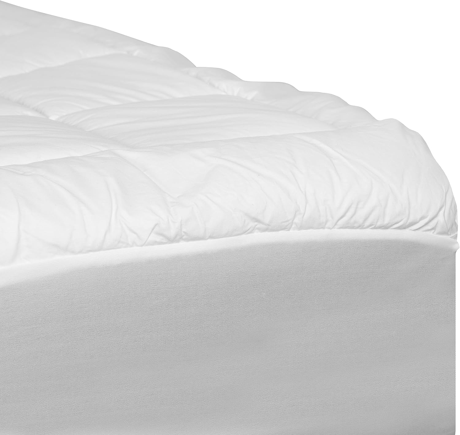 Optimize your sleeping experience with this elegant quilted pattern mattress pad. The breathable design of this fitted mattress pad provides a softer and cooler sleep surface and prevents light moisture and surface stains from reaching your mattress. Elastic corners and a deep pocket, fitted sheet design make it easy to get on and off your 8” to 21” mattress. Keep this king mattress pad clean by machine washing in cold water and tumble dry on low heat. Add this extra layer of cushioned luxury and get the restorative sleep you deserve.