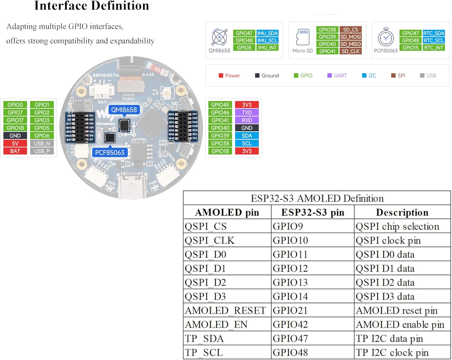 | Model Number | ESP32-S3-Touch-AMOLED-1.43-B |