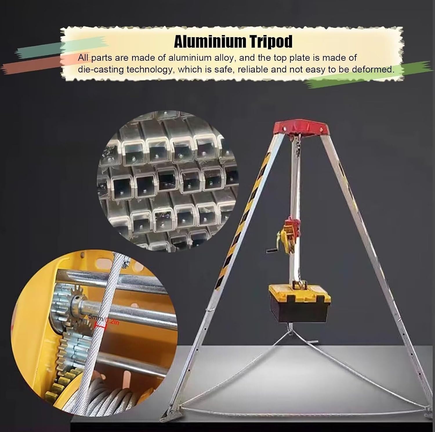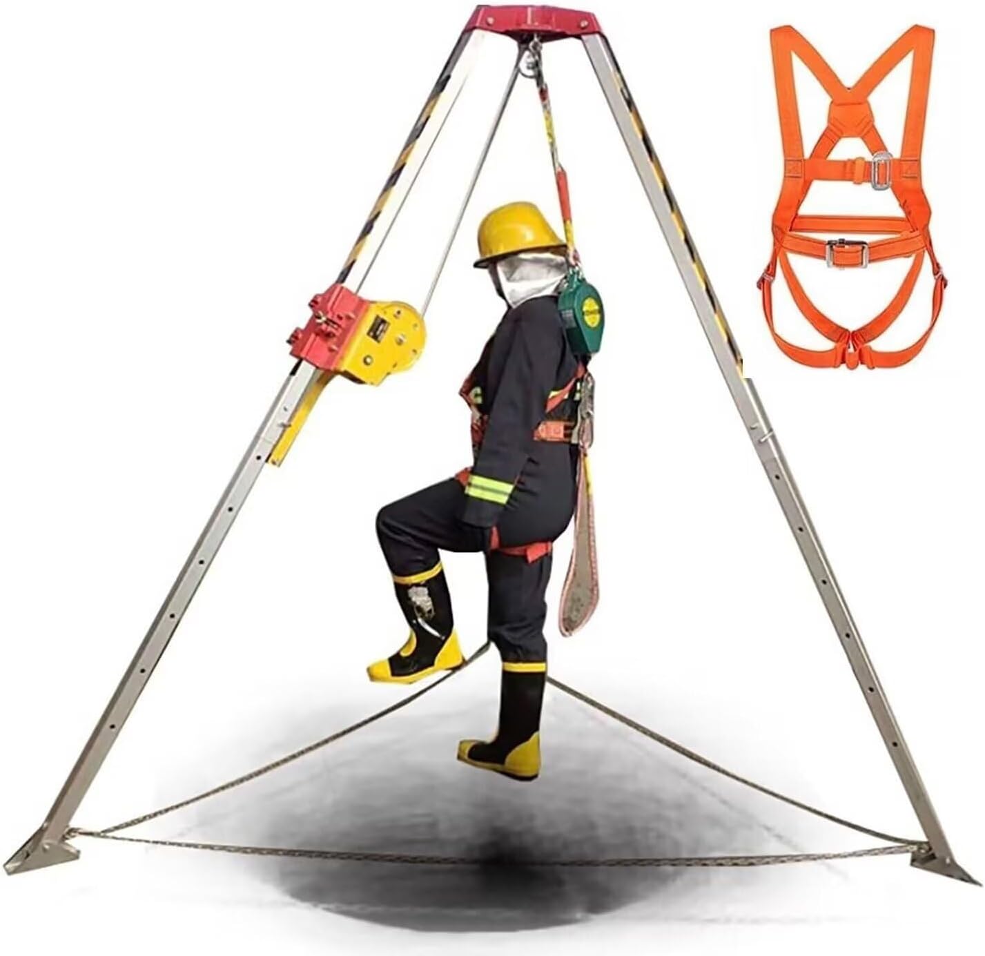 Emergency Firefighting Rescue Rope System:When it comes to confined space entry, you need a rescue and retrieval device that is reliable and you can depend on to bring you to safety when the situation calls for, and the Tripod Kit does just that! -- Our eyes are set on those Fall Protection solutions that will make your job easier and more productive while keeping you protected to the maximum degree.Specifications:Material: AluminumWorking Height: 1.34m to 2.14m AdjustableMan Winch Efficiency: 8:1Winch:0.2KNRated Load: 800KG/1763.7IBSSteel Cable Length: 15 m/49.2 FTSteel Cable Diameter: 5 mm/0.2 InchFeatures:Large Load Capacity, ensure the safety of users.The top plate is treated with die casting technology, has a long service life.The self-locking device for up and down, winch cable can be replacedg.The Height Can be Adjusted According to The Working Situation, 2.14m Max.Feet base support strap that improves stability and strengthens entire system.Stainless steel ring protection chain with flexibility and stronger tensile strength.Bracket attachment for easy installation.Package Content:1 × Confined Space Tripod1 × Seat BeltPrecautions:1. manual measurement, the product size and the physical object may have 1 2 cm error.2. The product is taken in kind, but due to light, equipment, shooting angle and computer resolution, the received object may differ from the photo, in kind shall prevail."
