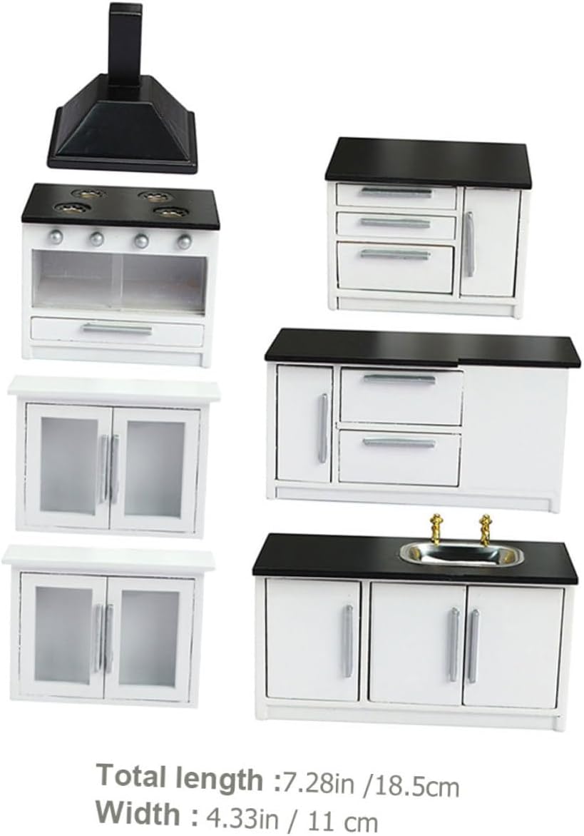 Package Include 1 x Mimi Cooking Bench 1 x Mimi Mimi Long Plane Table 1 x Mimi Short Plane Table 2 x Mini Hanging Cabinets 1 Features -Product Info:Wooden mini furniture - Hanging Cabinet Size: About 8.9x3x6.3cm/3.5x1.18x2.48in Tiny Kitchen Furniture - Color: Black Mini House Furniture Decor - Cooking Bench Size: About 8.9x3x6.3cm/3.5x1.18x2.48in Miniature Kitchen Model - Short Plane Table Size: About 8.4x5x6.1cm/3.3x1.97x2.4in Mini House Ornament - Long Plane Table Size: About 12.7x5x6.1cm/5x1.97x2.4in Doll House Furnishings - Water Channel Size: About 12.4x5x6.1cm/4.88x1.97x2.4in Mini Kitchenette - Kitchen Size: About 7x4.5x6.2cm/2.76x1.77x2.44in Mini House Kitchen - Material: Wood Mini Kitchen Accessory - Features the delicate workmanship and special shape make it very lifelike Mini Furniture Ornament. - It can be used for mini house decoration to make your mini house look more realistic and beautiful Mini Wooden Furniture. - Can bring uniqueness to your mini house to make it look like a real house Mini Furniture. - Great decor for micro sense, mini house, desktop decor, handmade decor and more Doll House Kitchenette. - It is made of good wood material, fine workmanship ensure the practicality and durability Wooden Mini Furniture.Goods DescriptionDoll House Kitchenette Specially designed for mini house decoration, it can be also used as the photography prop.Mini Wooden Furniture These are mini house furniture models, which are made by wood material, durable and decorative for use