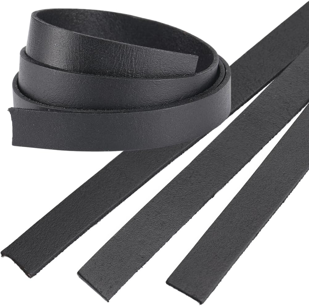 GORGECRAFT 3 Roll 25mm Wide Flat Leather Cord Genuine Leather Strip 2mm Thick Black Leather Strap Cowhide String Braiding Thread Rope for Bracelets Jewelry Making Belts Drawer Handle Pull DIY Crafts Product Specification: Material: Cowhide Color: Black Size: about 25mm wide, 2mm thick. 80cm long/ roll, 3 roll Package Included: 3 roll genuine leather cord Feature: DIY CRAFTS: Do-it-yourself DIY leather braiding string strips to make key chains, formal belts, small tags, jewelry, fashion bracelets, tactical belts, suspenders and other items. It is the perfect gift for DIY lovers, friends and family. WIDE APPLICATIONS: Perfect for making pet collars, leather strips, key chains, backpack straps, shoulder straps, belts, leather shoe laces, clothing accessories, bracelets, necklace etc jewelry making, sewing craft, braiding, beading and so on.