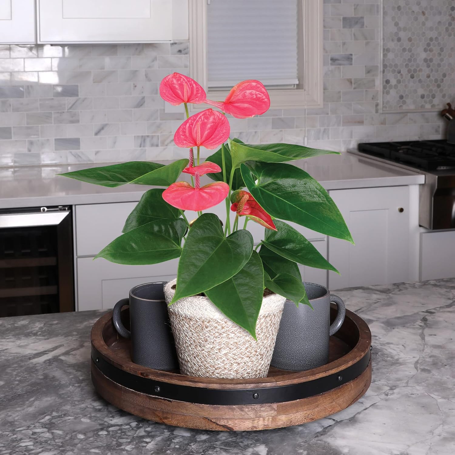 Green Circle Growers 5" Pink Anthurium in Cream Jute Pot, Live Indoor Plants, House Plant