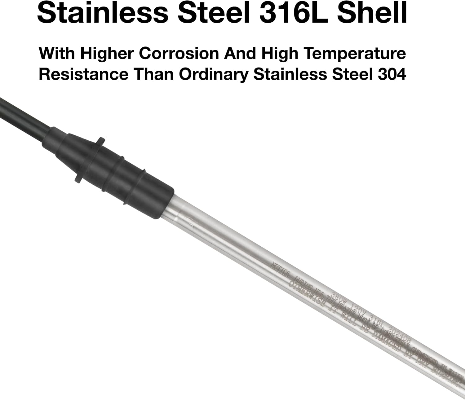 Product Introduction:Grillme pond heater is applied to keep ponds from freezing completely, which aids in oxygen replenishment; If you're bothered by your outdoor fish pond freezing in the winter when it snows, you'll need a pond heater like this, which keeps a hole in the ice of your backyard pond for the necessary oxygen exchange, making it an good winter survival solution for your koi. Product Parameters: 380W 120V , Heater Length 10 Inches, Power Cord Length 236 Inches,Suitable For Pond(The Water Depth Needs To Be Greater Than 11.81 Inches) High Quality Material: The heater casing is made of 316L stainless steel material, which has better high temperature resistance and corrosion resistance than 304 stainless steel. Plastic reinforced nylon float can make de icer float on the water surface. Notice: During the heating process, the heater needs to be completely submerged in water to avoid dry burning and damage. This product is only suitable for heating tap water and pond,not suitable for heating corrosive liquids such as well water, seawater, acid, alkali, etc If there is scale on the surface of the heating rod, it is necessary to regularly use descaling agents or vinegar to remove the scale. Warranty: This Product Provides A One-year Warranty, And Is Free To Return Or Exchange If Damaged During Normal Use.