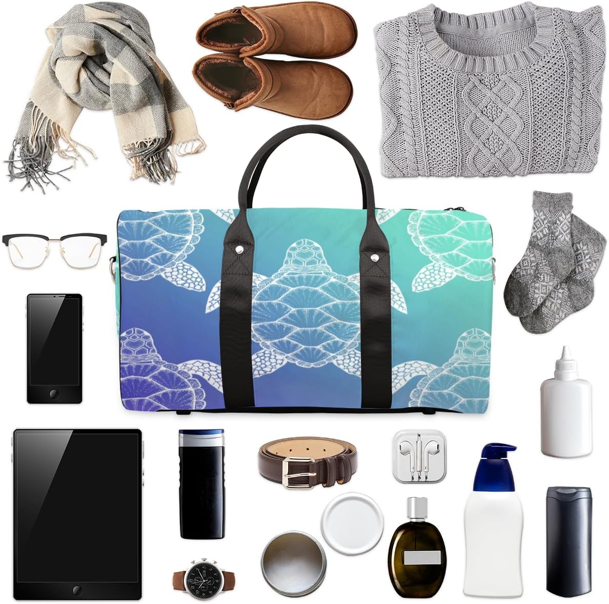 Large capacity: Womens weekend duffel bag measures 17.4 x 8.3 x 9.5 inches (approximately 44 x 21 x 24 cm), meeting most airline carry-on requirements. Despite its compact size, the spacious main compartment easily accommodates gym clothes, sports shoes, and overnight essentials. Three built-in pockets keep your phone, passport, and snacks neatly organized and within easy reach.Lightweight Waterproof: Lightweight duffel bags for traveling is crafted from premium waterproof composite twill fabric, offering a lightweight yet robust construction. Its exceptional waterproofing ensures contents remain dry, complemented by smooth-running heavy-duty metal zips for enduring reliability.Foldable Storage: When not in use, this foldable duffel bag for travel can be folded and stored in drawers, storage cabinets, or suitcases. It serves as an ideal backup bag for handling last-minute trips, extra shopping, or additional storage needs.Versatile Carrying Options: Duffel bags for traveling has comfortable handles and a detachable, adjustable shoulder strap, letting you choose your carry style freely. Its dedicated luggage strap securely attaches to your suitcase’s telescopic handle, freeing your hands and easing airport transfers and daily commutes.Versatile: This multifunctional sports duffel bags effortlessly adapts to diverse scenarios—be it gym sessions, travel, overnight stays, beach outings, or cabin luggage. Whether for daily workouts, weekend getaways, or outdoor adventures, it proves a dependable companion. Thoughtful Gift: Standing out from ordinary designs, this duffel bag women offers distinctive style. Beyond being a practical everyday accessory, it makes an excellent present for friends, family, colleagues or team members. Whether for birthdays, holidays or team events, it's a much-appreciated gesture.