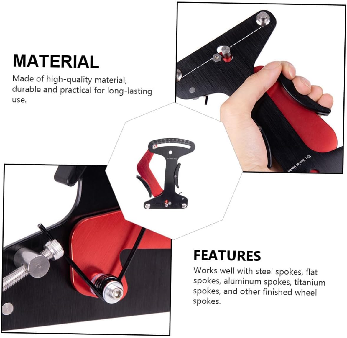Package Include 1 x spoke tension meter Features -Size:19.60X14.50X4.00cm/7.70X5.70X1.57in spoke tool -Product Info:Spoke correction tool -Material:Aluminium Alloy bicycle spoke tension meter tool -Color:Black bike spoke tool -In order to determine the tensile value, it covers steel round spokes, flat spokes, aluminum round spokes and more road bike wheel repair tool. -It can be used and judged easily and quickly, convenient and practical spoke tension meter. -Adoption of , sturdy and strong for long-term use bike spoke tension. -Bicycles spokes can be measured regardless of diameter, material and shape spoke tension tool. -You can refer to the spoke tension comparison table. The comparison table is in accordance with the value measured by the test instrument strictly tension adjustment tool bike.Goods Informationbike spoke tool It can adjust the tension of the steel wire to correct the deformation of the wheel.bike spoke tools Portable for easy carrying.bikes spoke tension meter This product is a bike spoke tension meter, adoption of premium and durable material.bike spoke tension Light weight and high performance