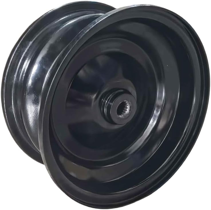 Upgrade your go-kart with this durable rear rim, measuring 8.5 x 3.75 inches and designed as a direct replacement for the Coleman KT196 and HiSun HS200GK go-karts. Built from sturdy cast iron and finished with a sleek black powder coat, this wheel is engineered to withstand the demands of off-road and recreational kart use. The rim features a splined hub center for a secure, precise fit onto the rear axle, ensuring reliable power transfer and stability during every ride. With a load capacity of 500 pounds and a wheel backspacing of 4.13 inches, this rim is built to handle real-world performance requirements. The classic black finish not only looks great but also provides added protection against wear and corrosion. Whether you're replacing a damaged rim or upgrading your kart's rolling stock, this rear rim delivers the quality and fitment you need. Please verify compatibility with your specific go-kart model before purchasing to ensure a proper fit.