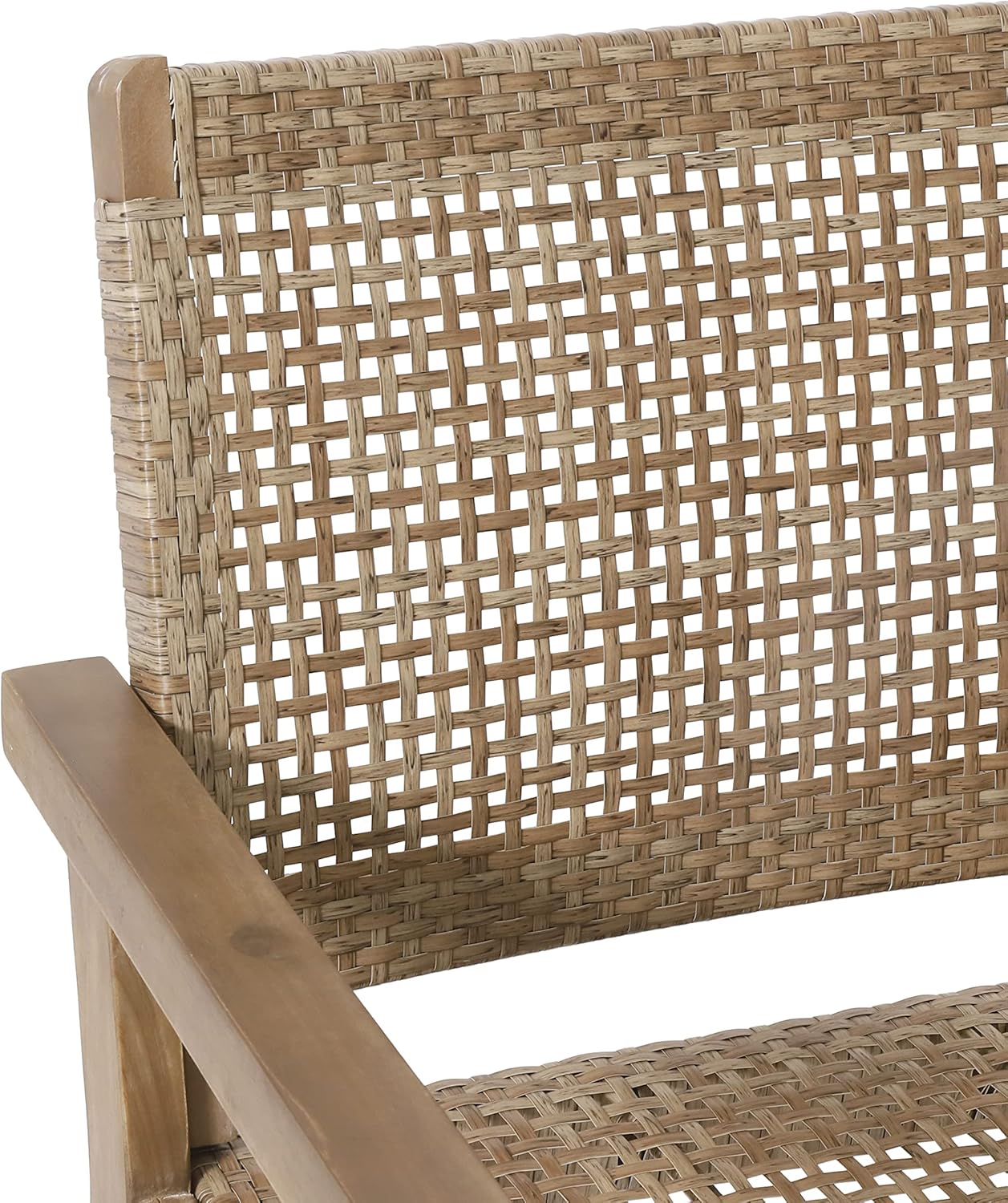 Cozy seating and relaxing vibes will turn your outdoor space into an oasis. Combining a flat wicker weave with a sturdy acacia wood frame, our loveseat will be a flawless addition to any outdoor lounge area. This can be used as a standalone or can be used to accent your existing furniture, making this a dream for those who love to personalize their space. With a beautiful transitional design with mid-century modern influences, this loveseat offers hours of conversation for you and a loved one.Frame Material: Acacia WoodSeat Material: Faux RattanFrame Finish: Light BrownSeat Finish: Light MultibrownAssembly RequiredDimensions: 27.25 inches deep x 46.50 inches wide x 34.00 inches highSeat Dimensions: 21.50 inches deep x 42.50 inches wide x 16.00 inches highArm Height: 23.75 inchesWeight Capacity: 600 lbs
